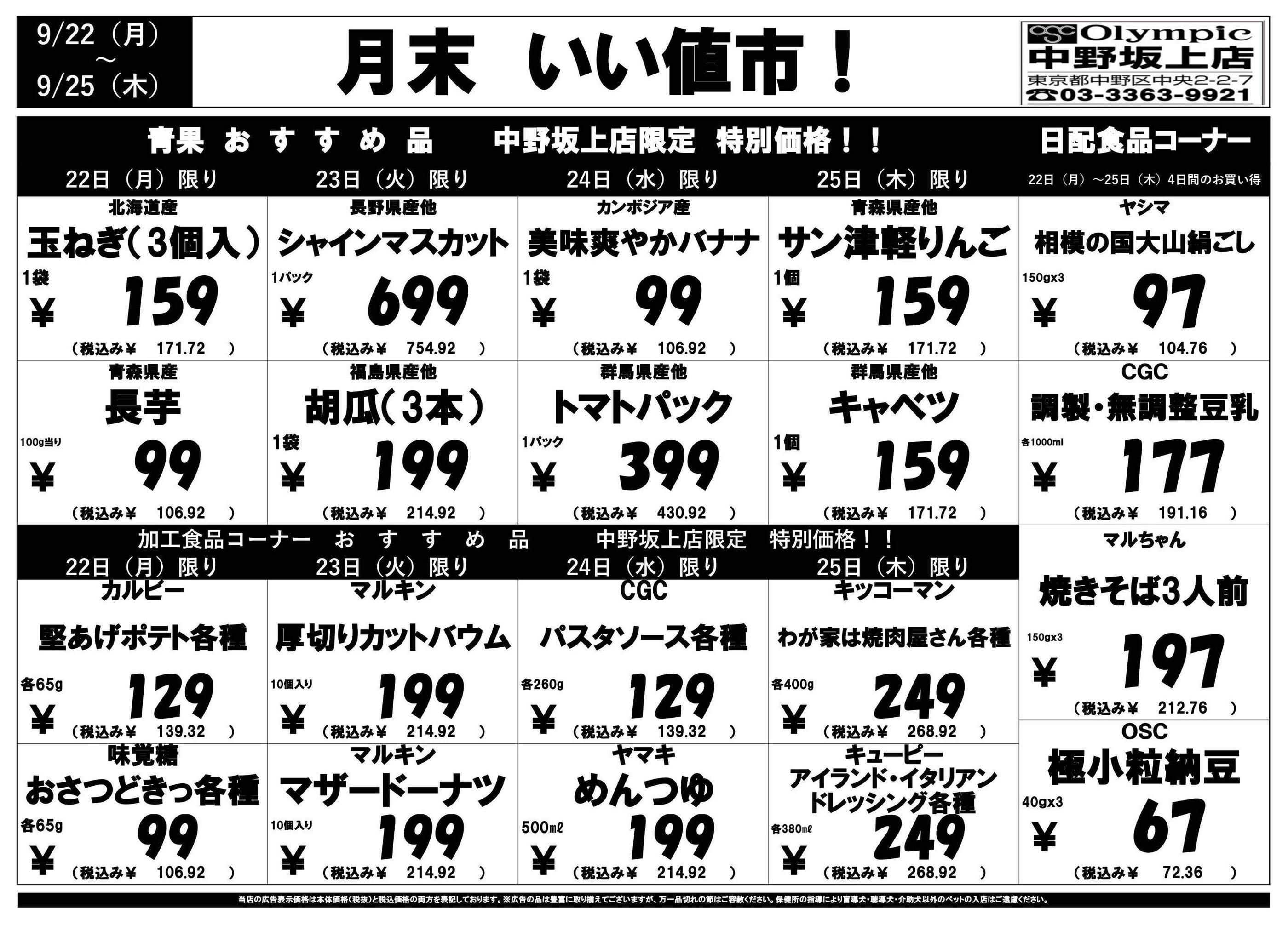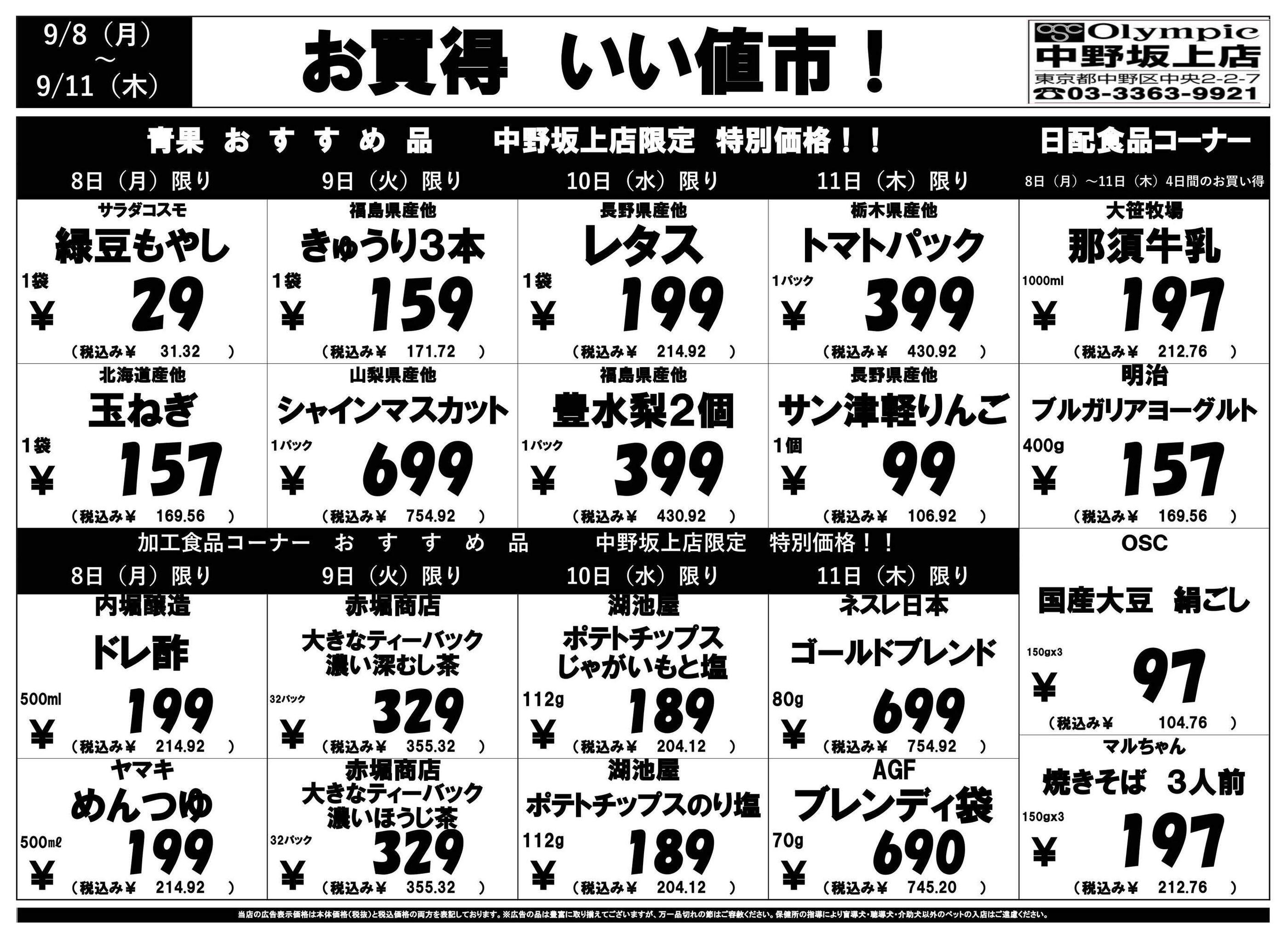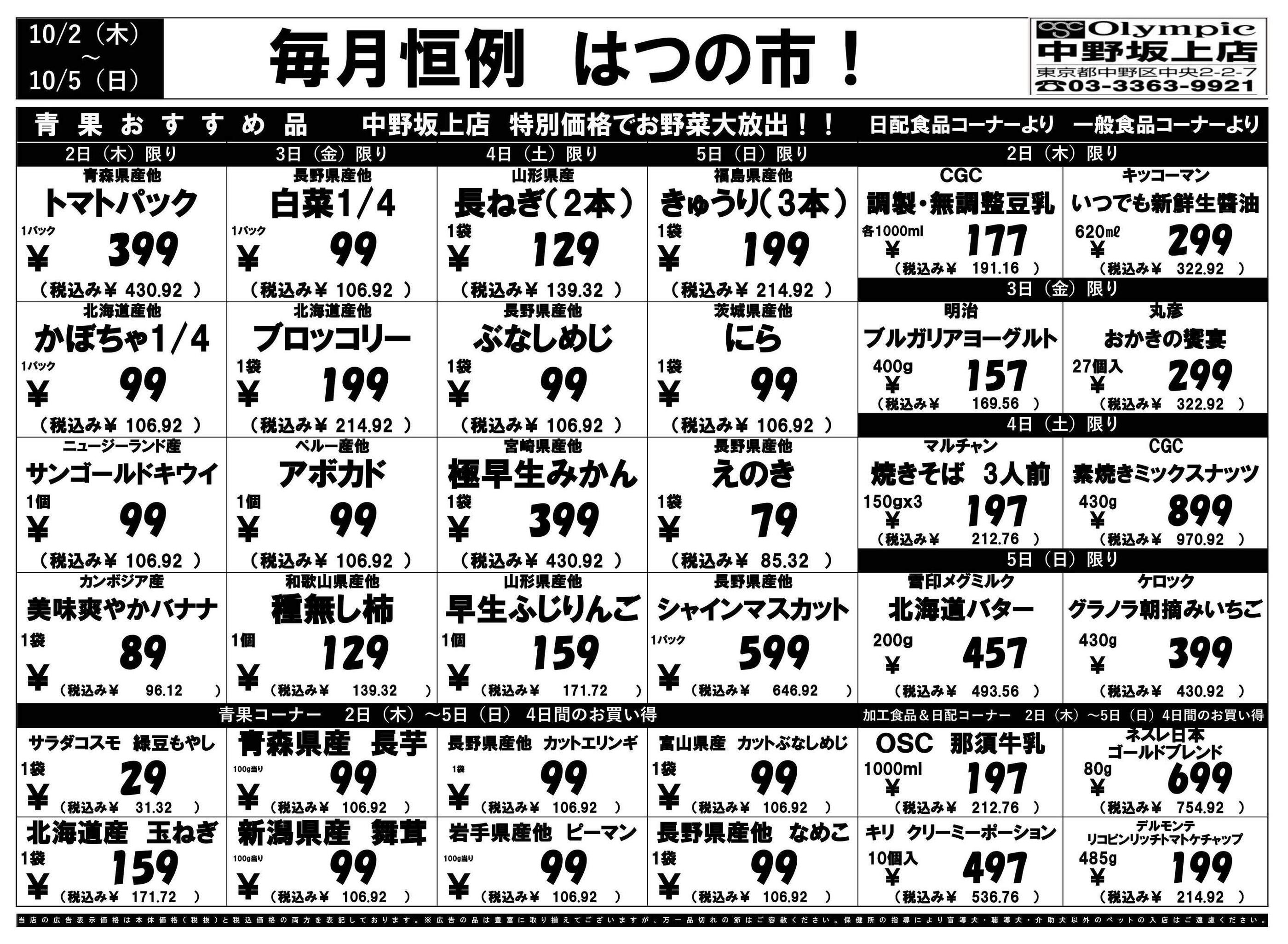 オリンピック中野坂上店今週のチラシ(2025年9月29日〜10月5日)