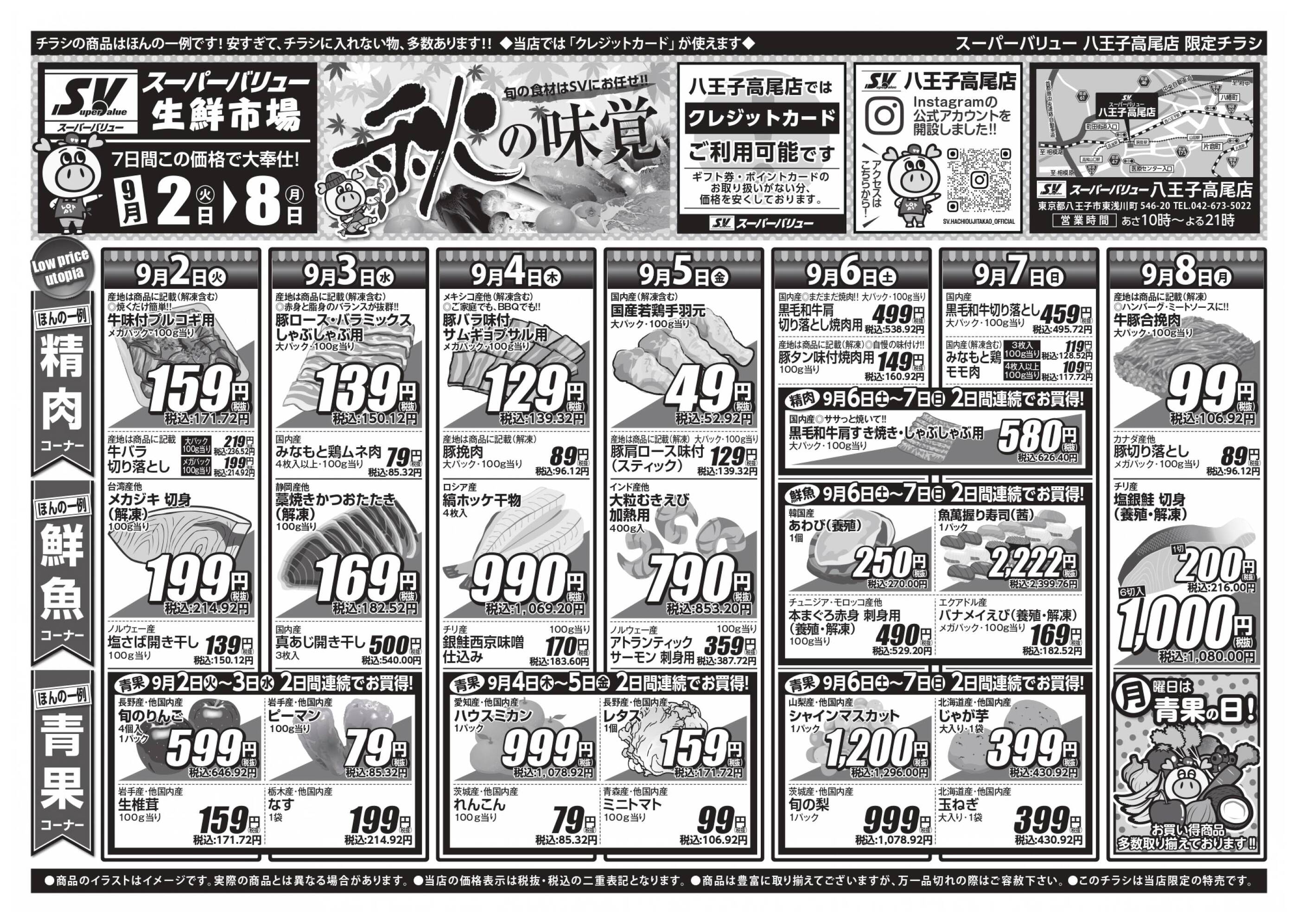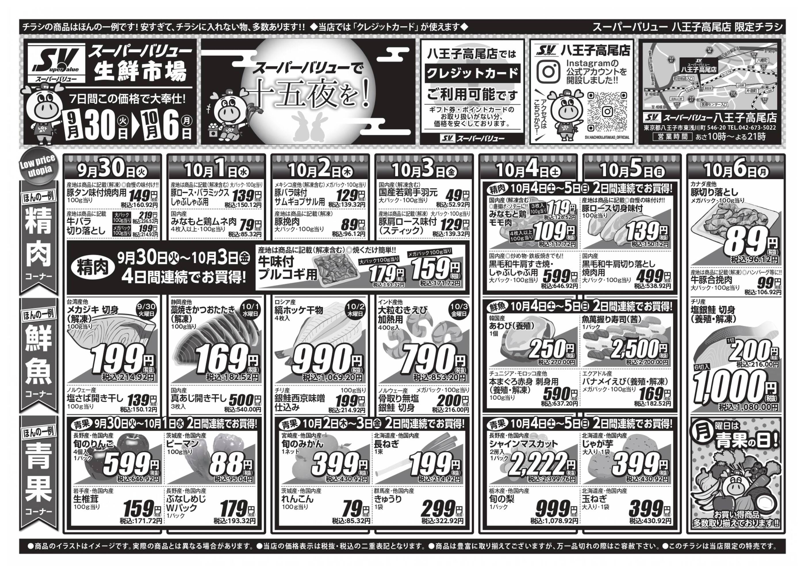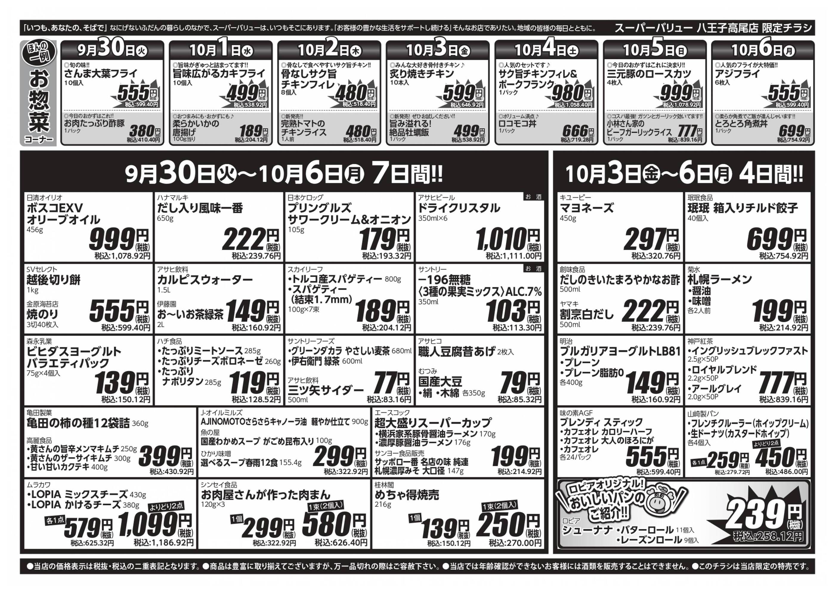 スーパーバリュー八王子高尾店今週のチラシ(2025年9月29日〜10月5日)