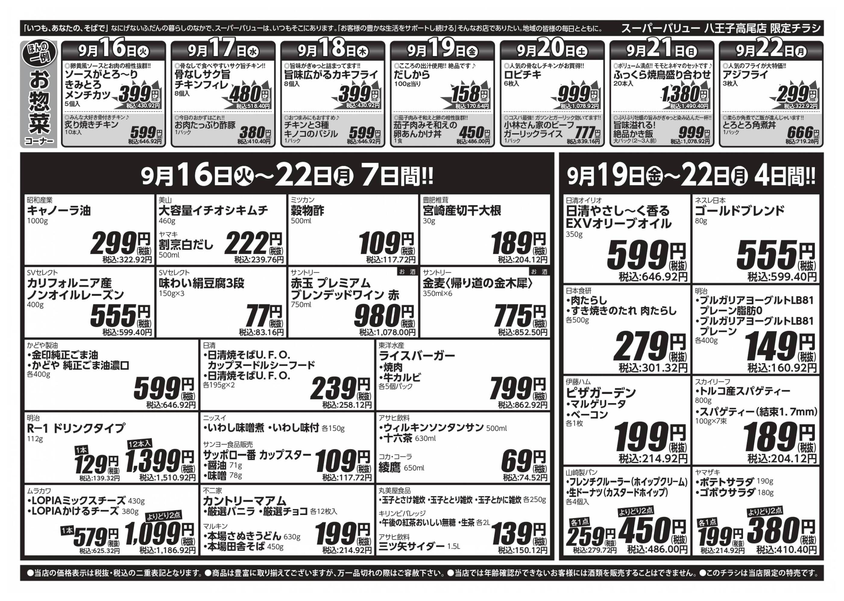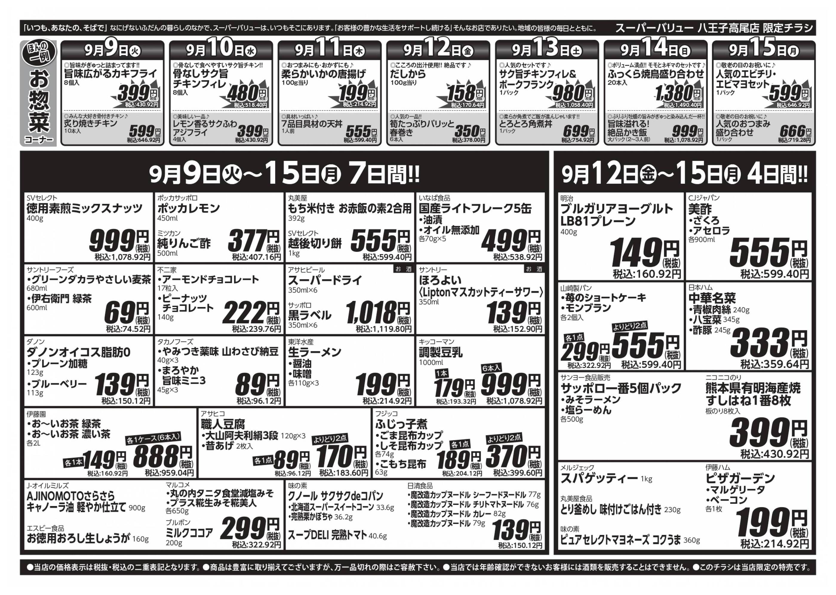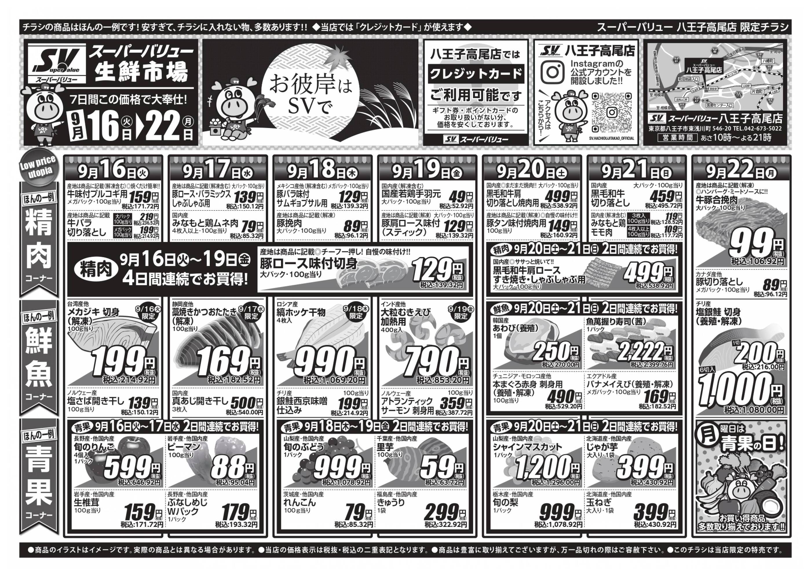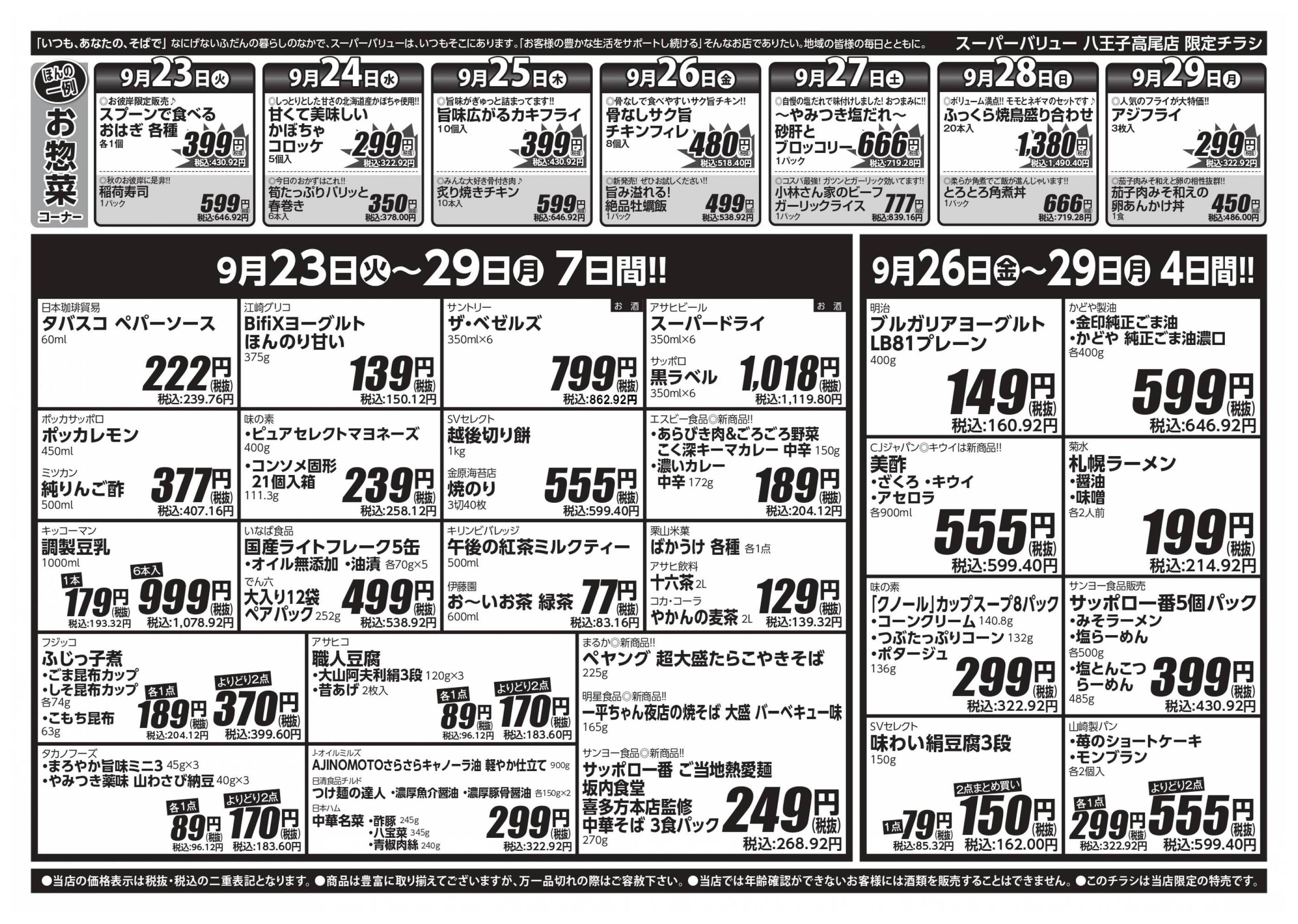 スーパーバリュー八王子高尾店今週のチラシ(2025年9月29日〜10月5日)