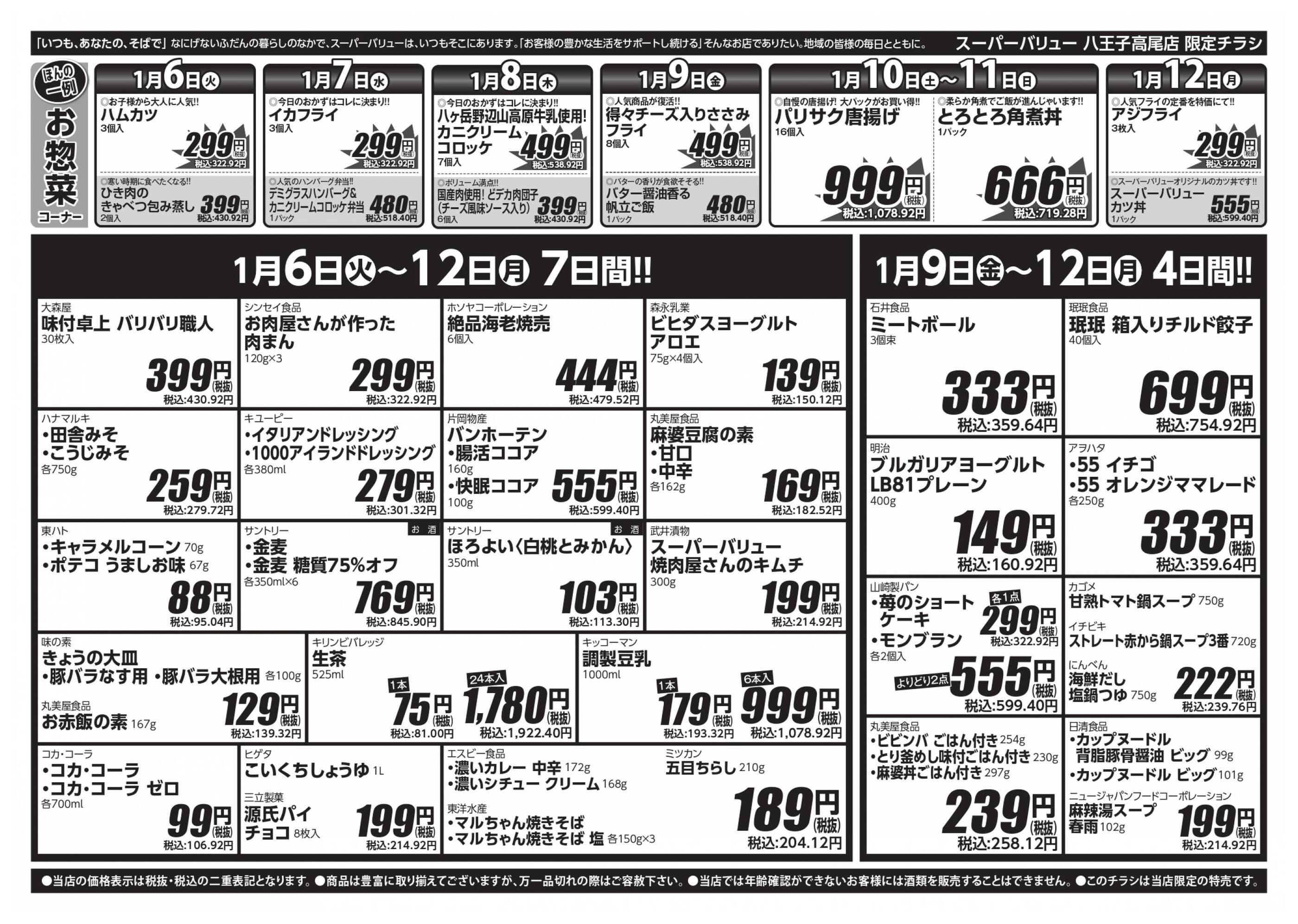 スーパーバリュー八王子高尾店今週のチラシ(2026年1月5日〜1月11日)