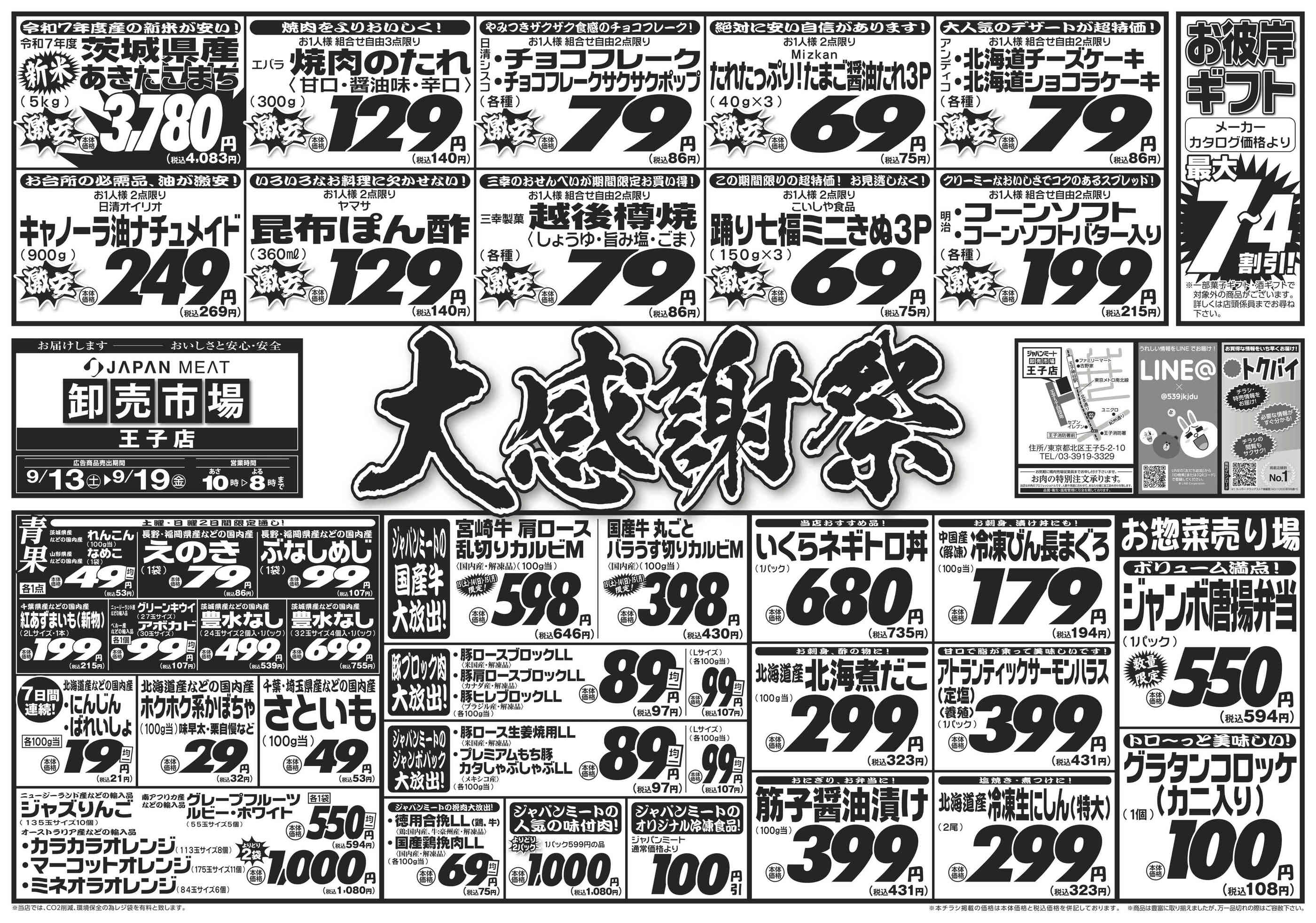 ジャパンミート王子店今週のチラシ(2025年9月29日〜10月5日)