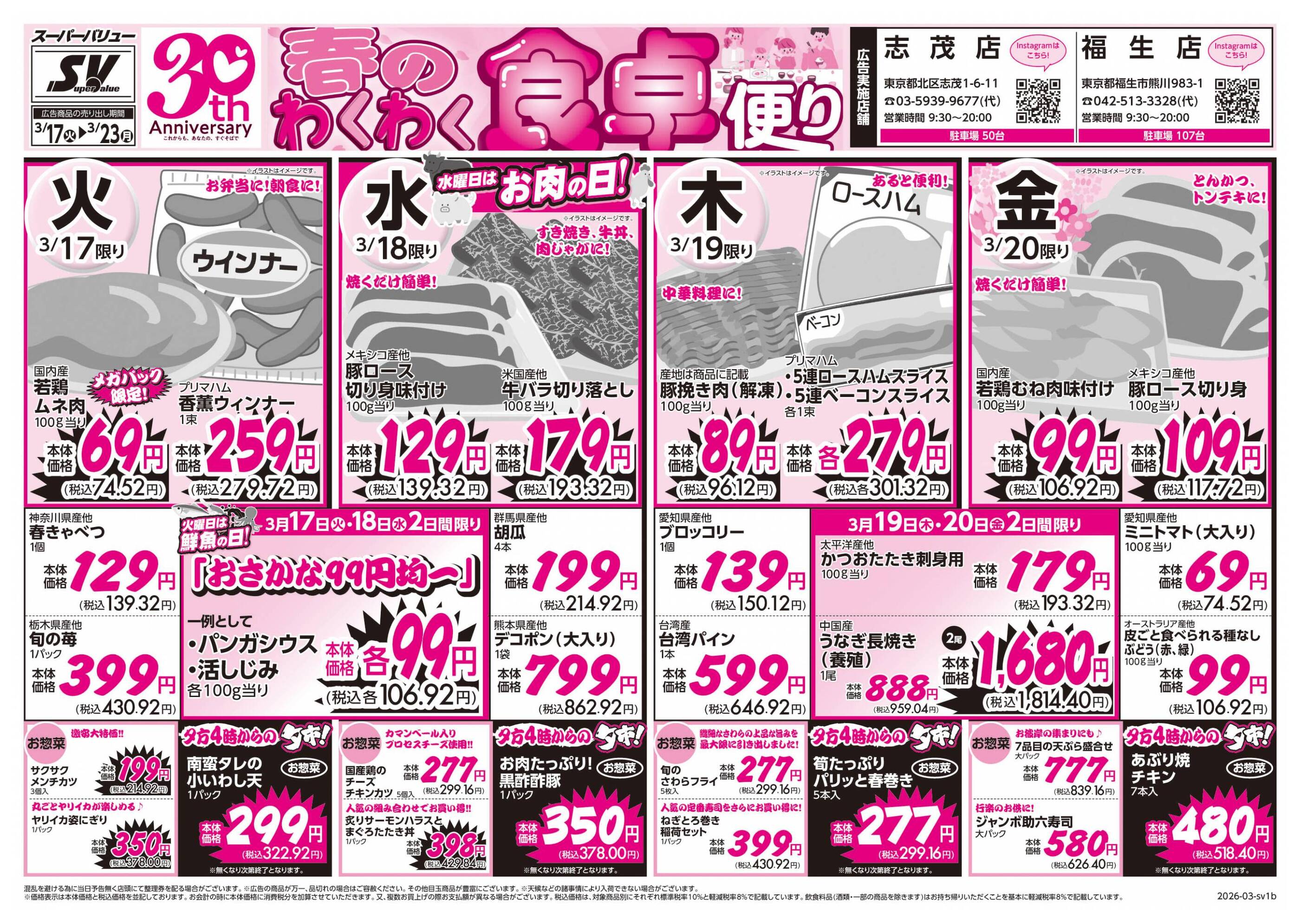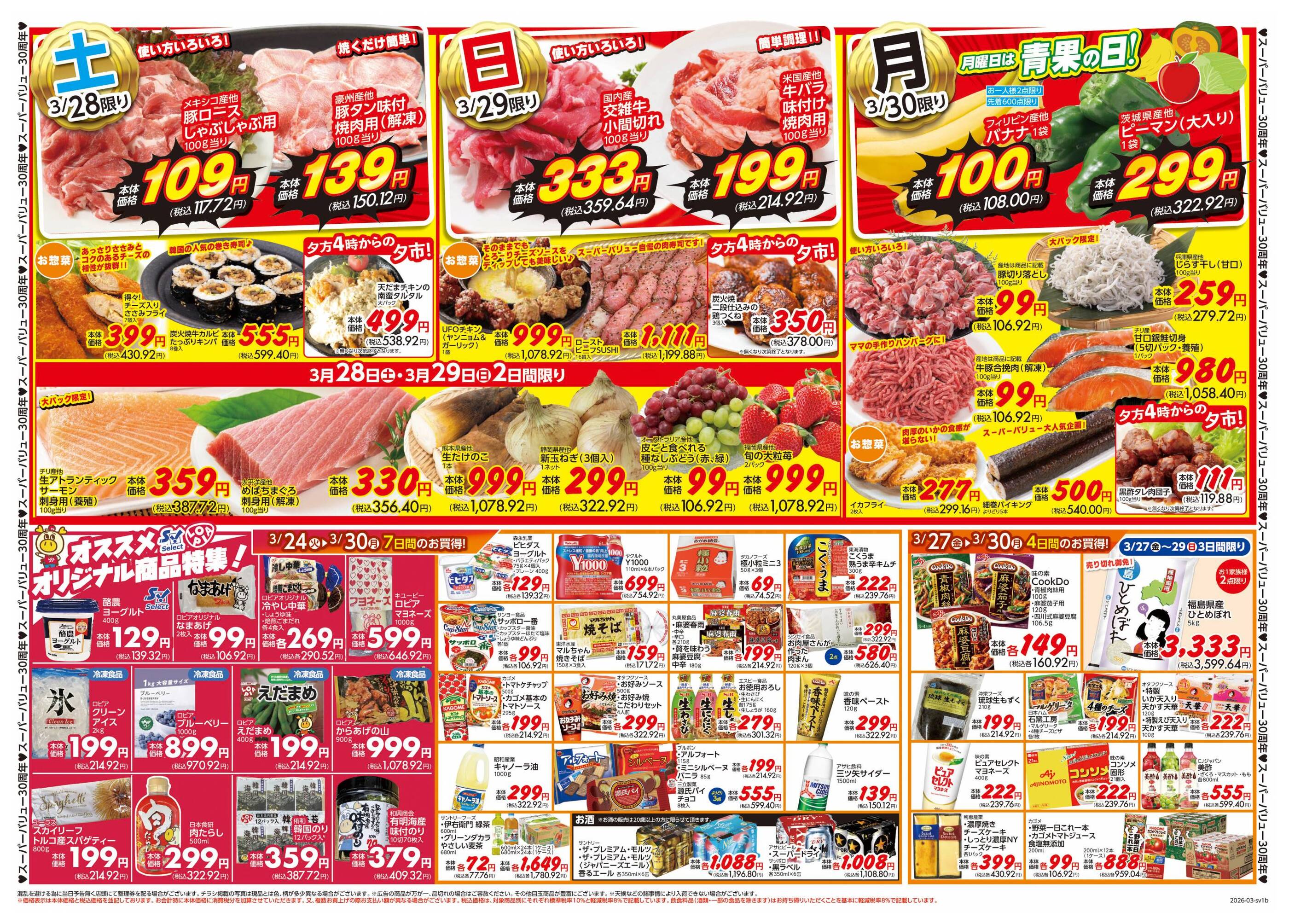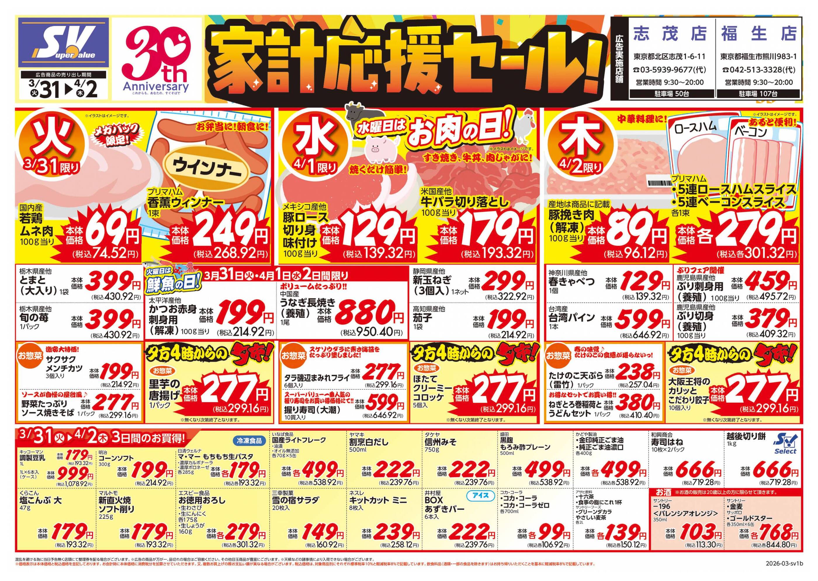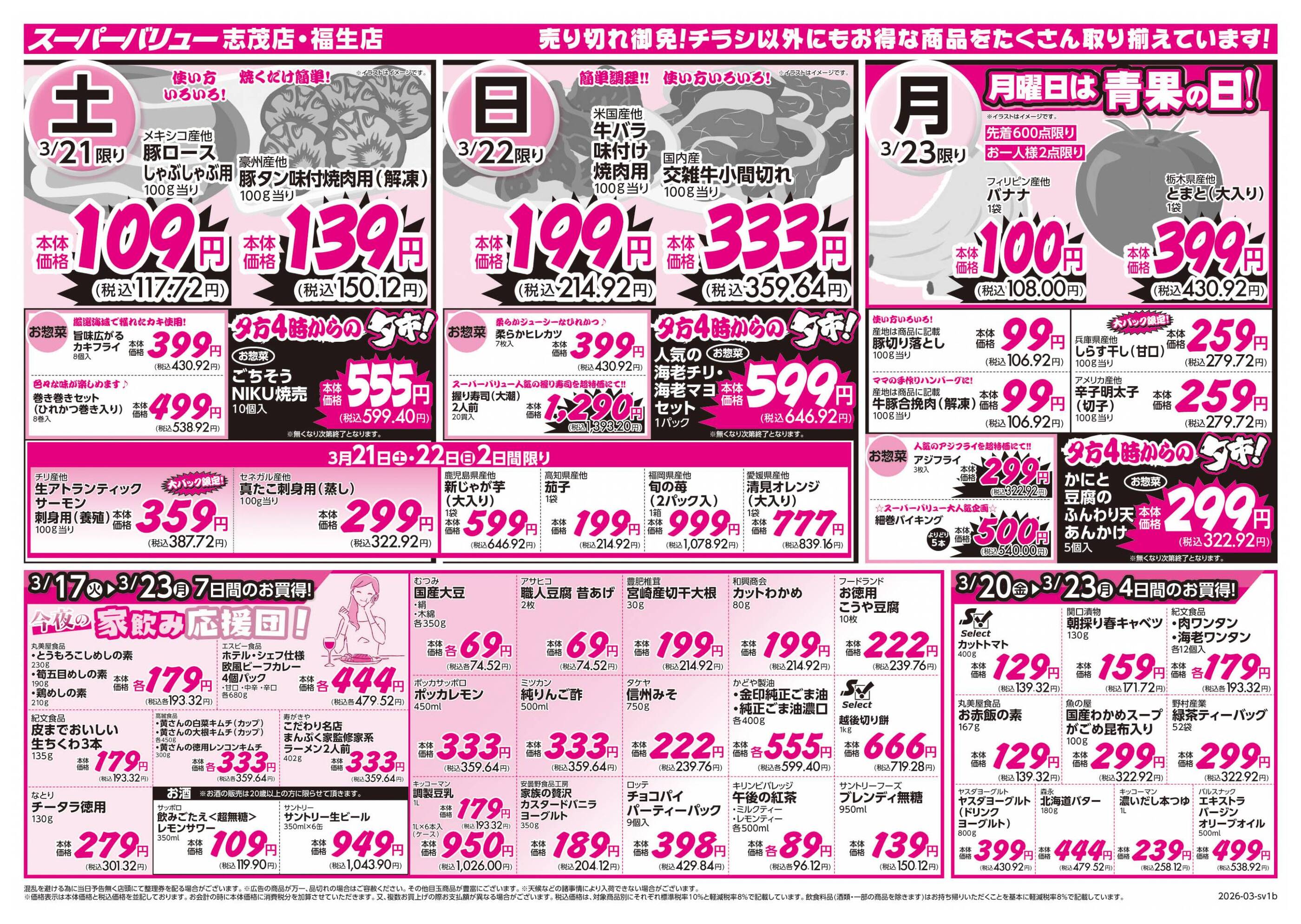 スーパーバリュー志茂店今週のチラシ(2026年3月30日〜4月5日)