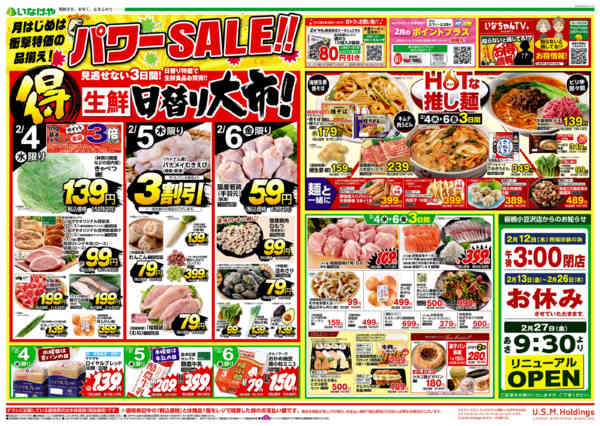 特売やセール情報など最新のチラシを掲載中。(4種類、7枚のチラシを掲載しています)