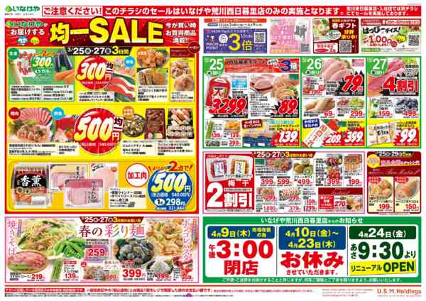 特売やセール情報など最新のチラシを掲載中。(3種類、5枚のチラシを掲載しています)
