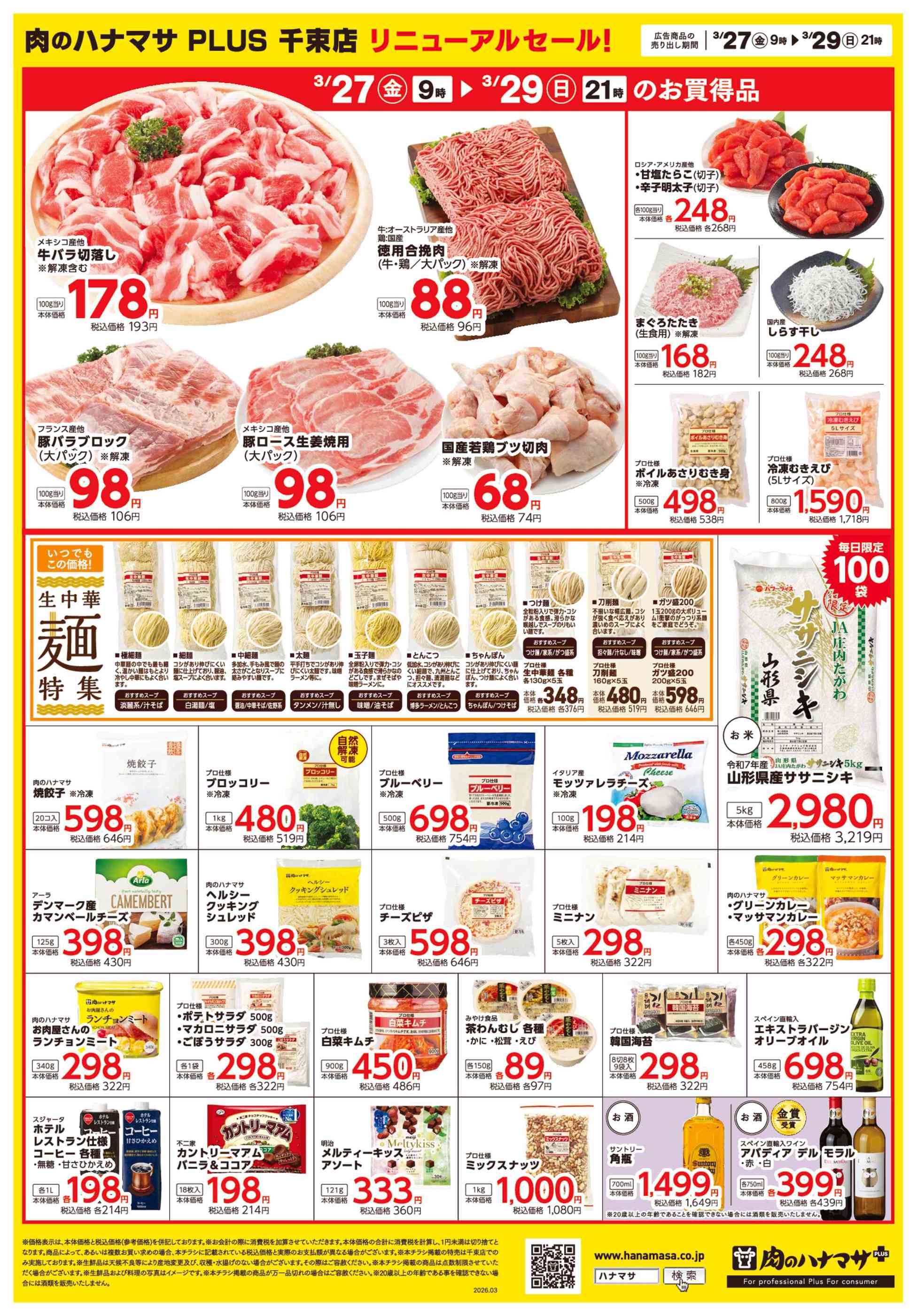 肉のハナマサ千束店今週のチラシ(2026年3月30日〜4月5日)