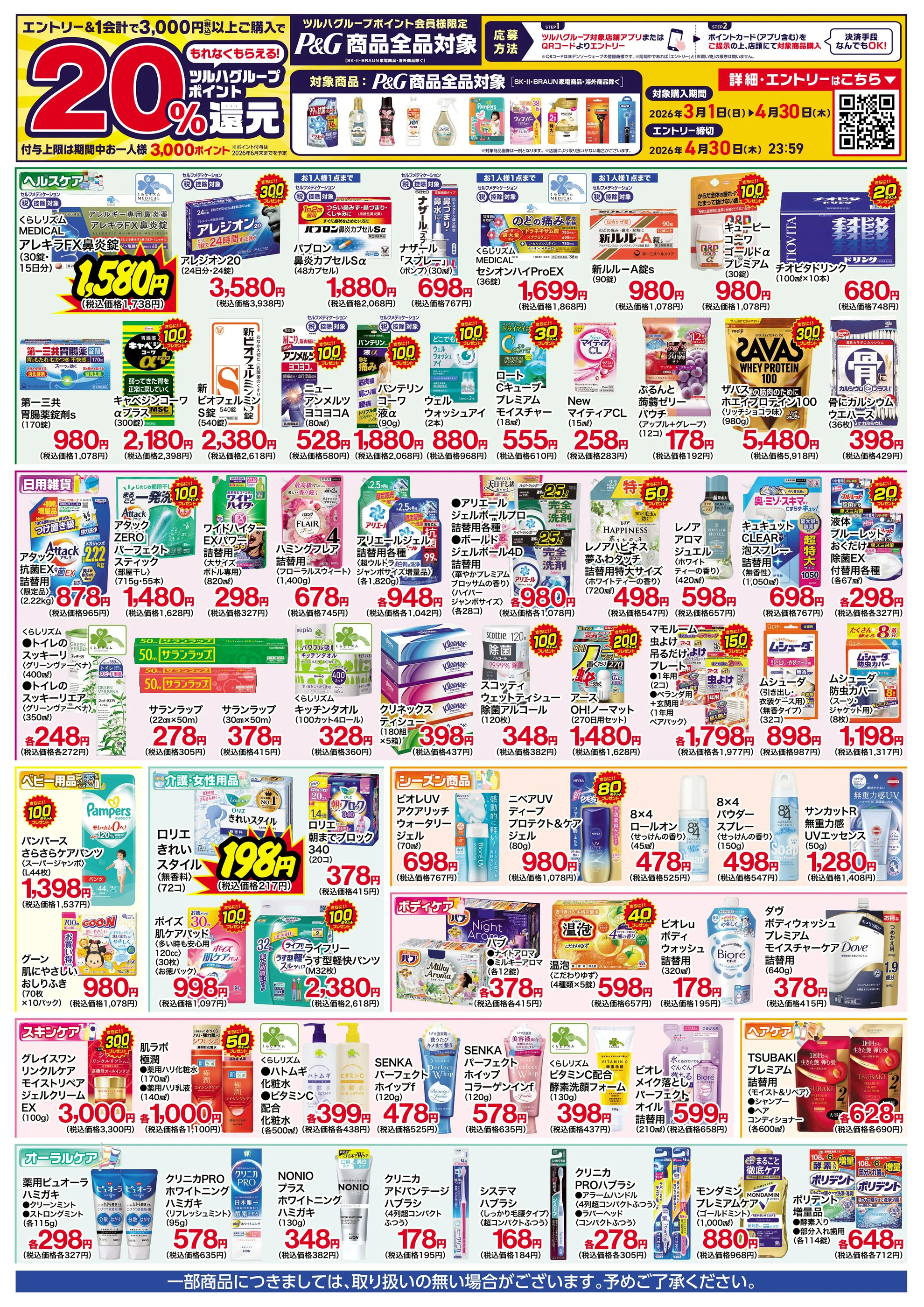 - 2026.3.1-2026.4.30【P&G】ツルハグループポイント20%還元キャンペーン3月1日~4月30日 (1枚)