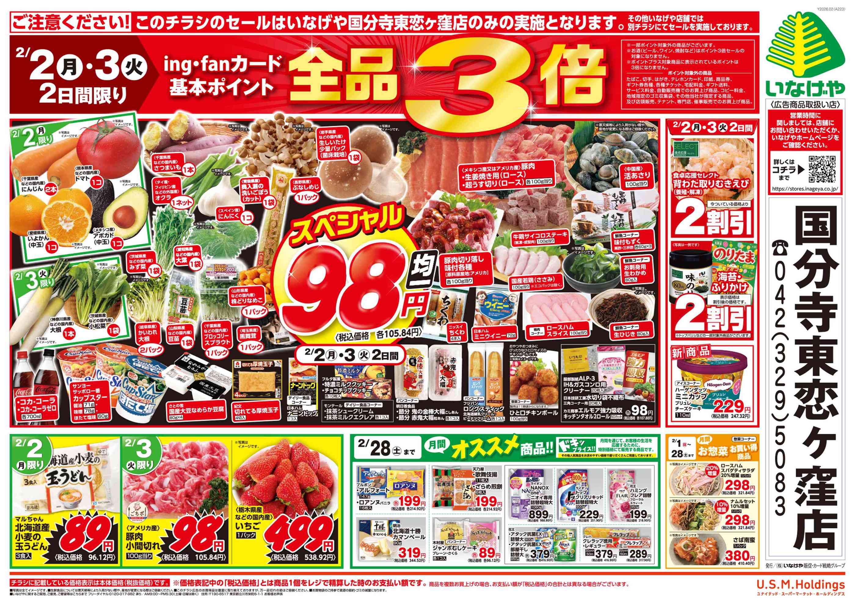 いなげや国分寺東恋ヶ窪店今週のチラシ(2026年2月16日〜2月22日)