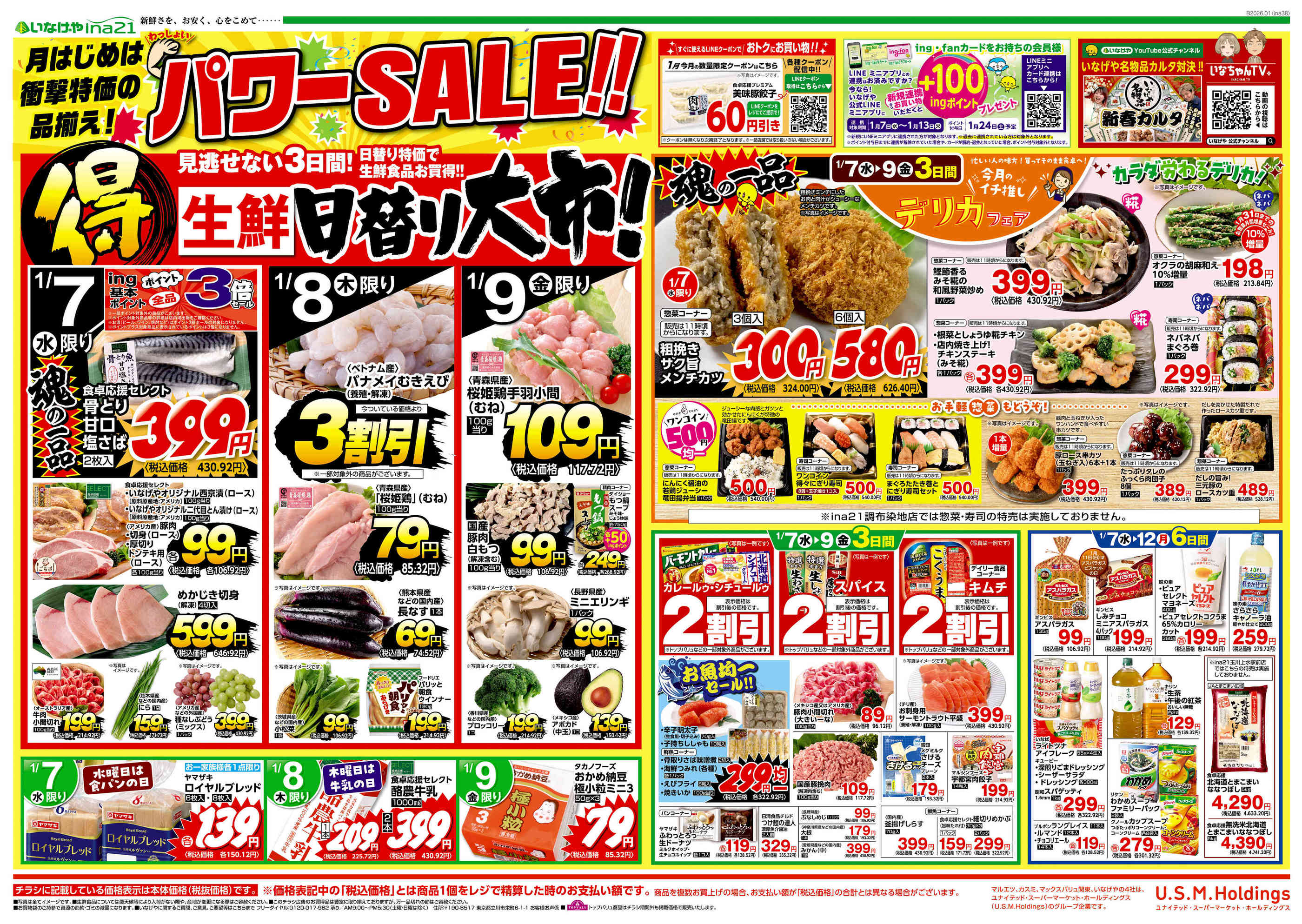 いなげやina21国立矢川駅前店今週のチラシ(2026年1月5日〜1月11日)