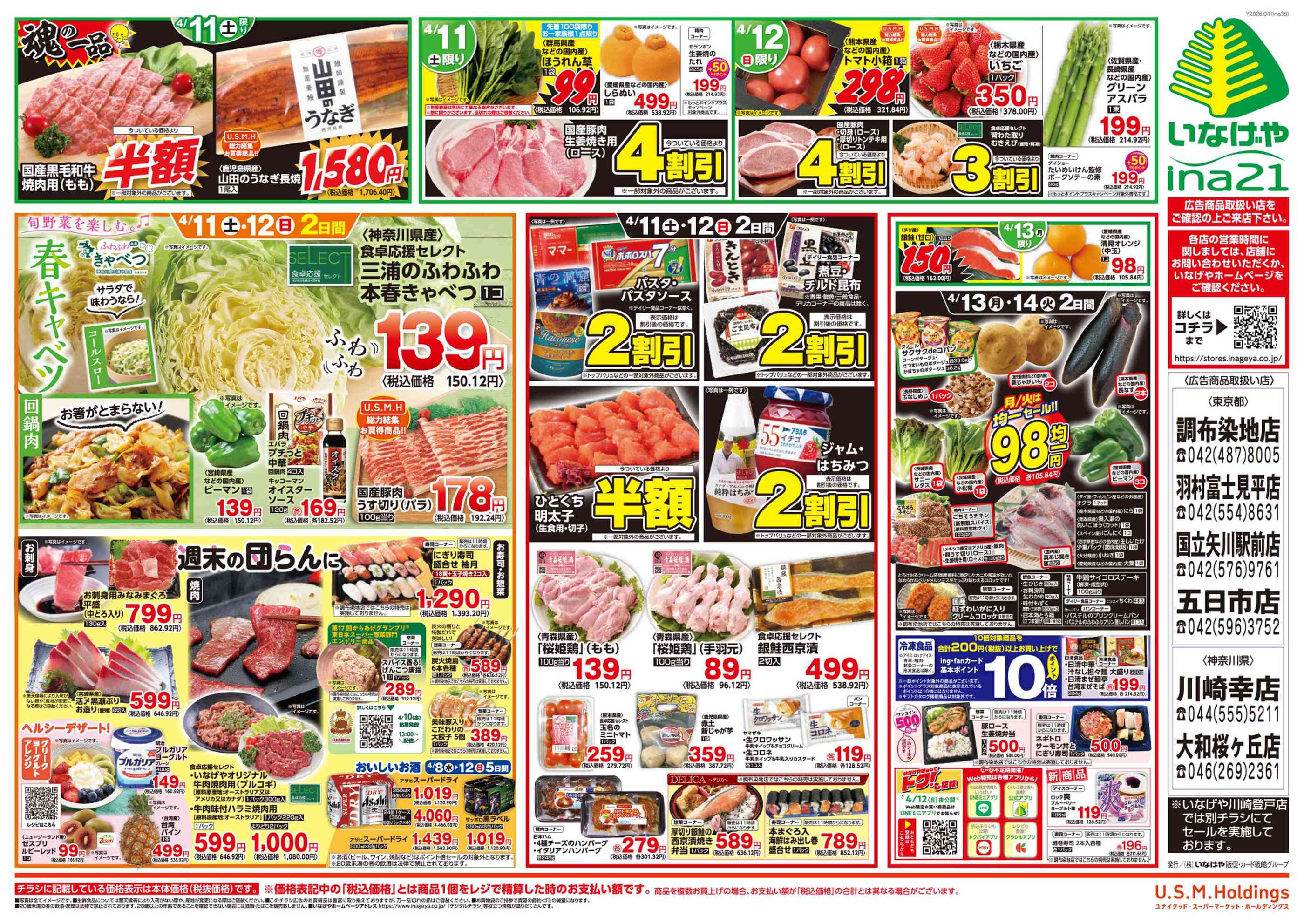 いなげやina21国立矢川駅前店今週のチラシ(2026年4月6日〜4月12日)