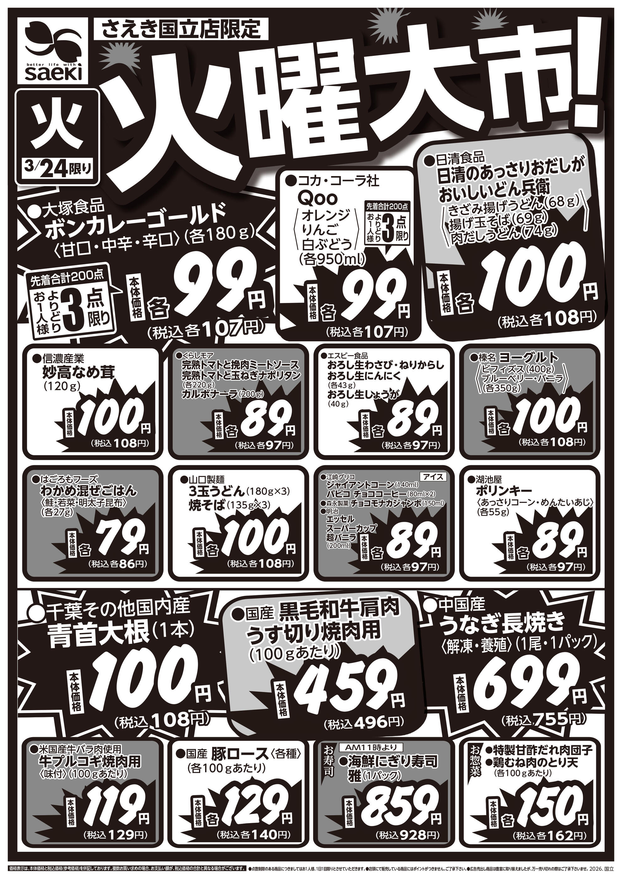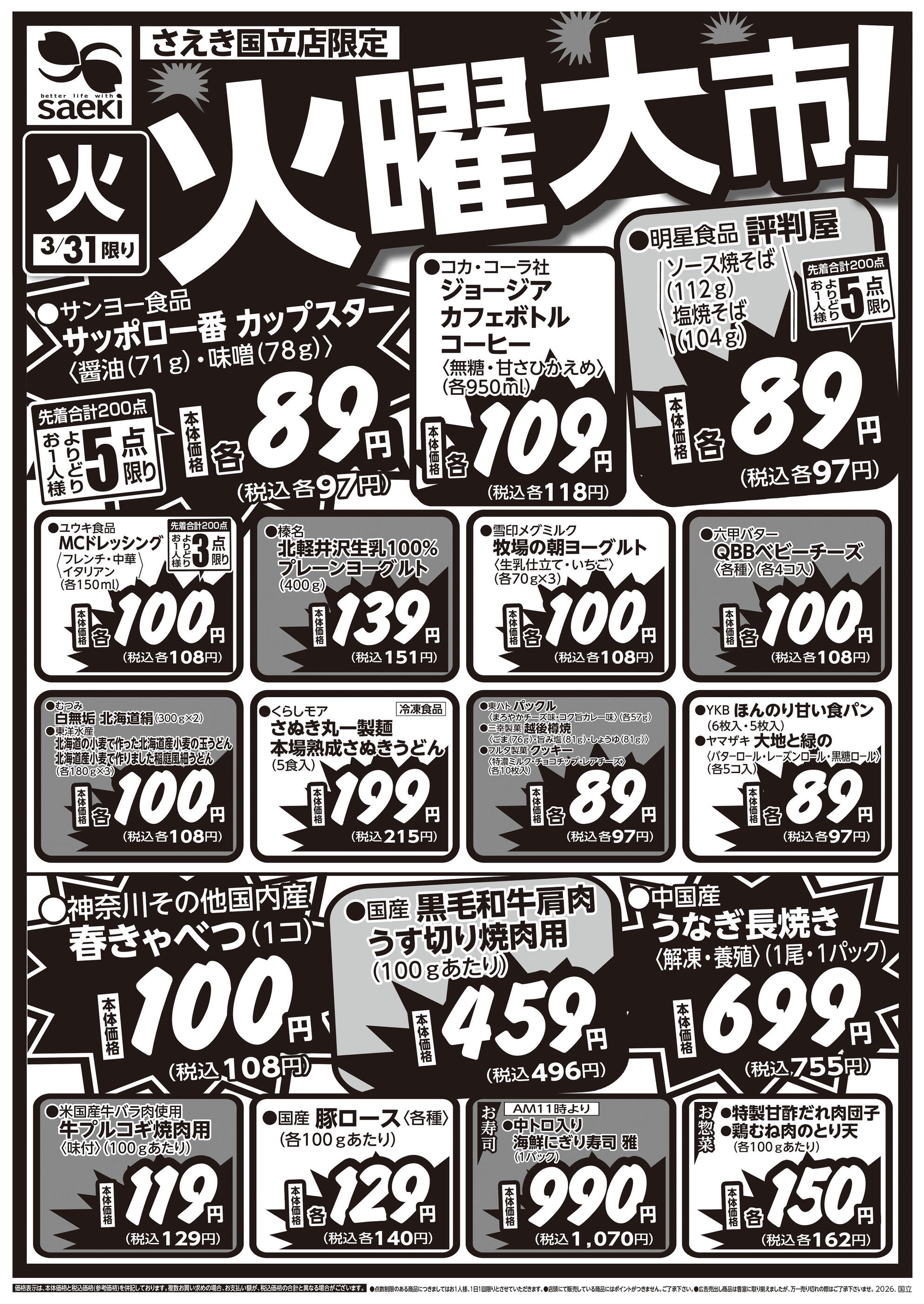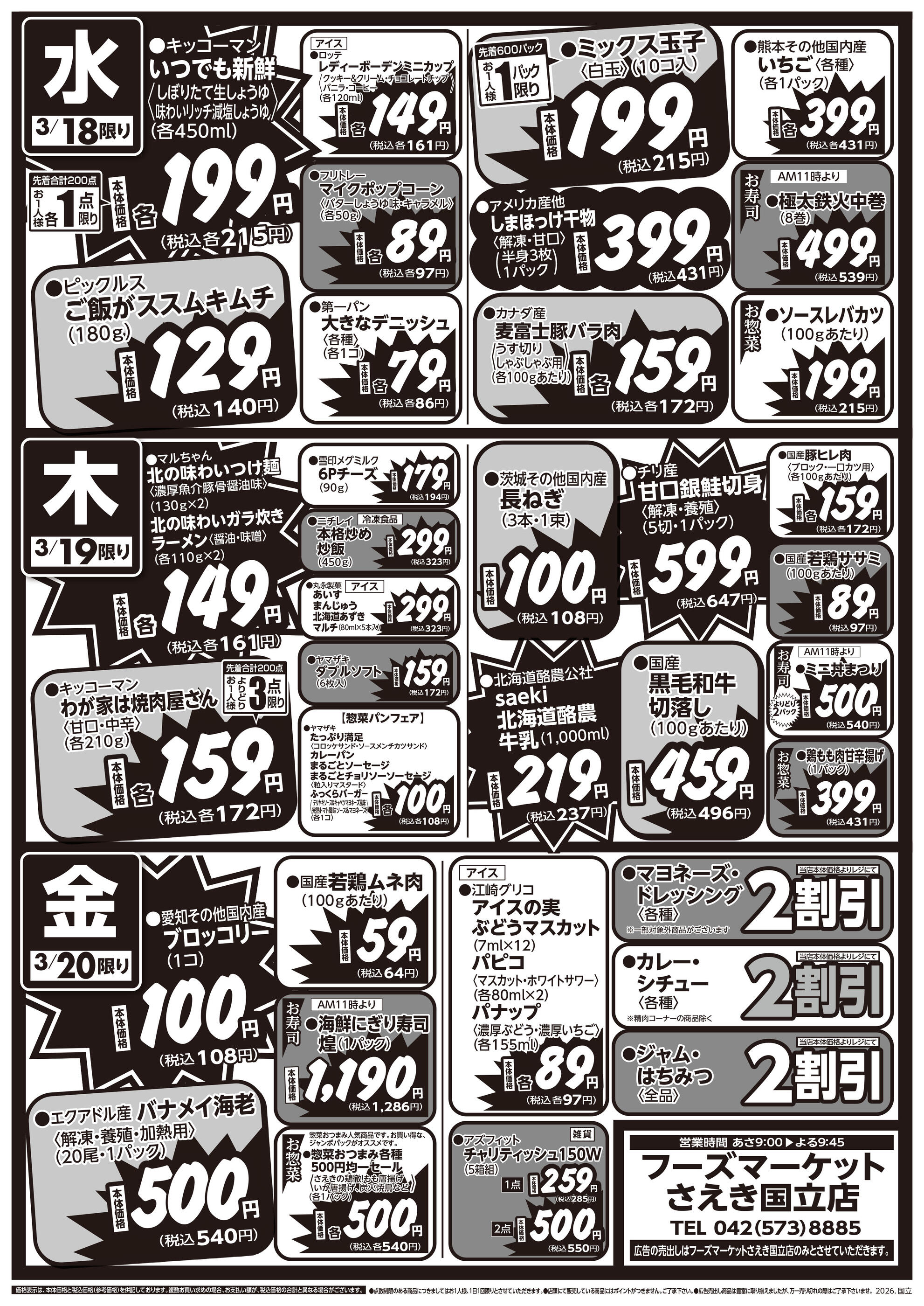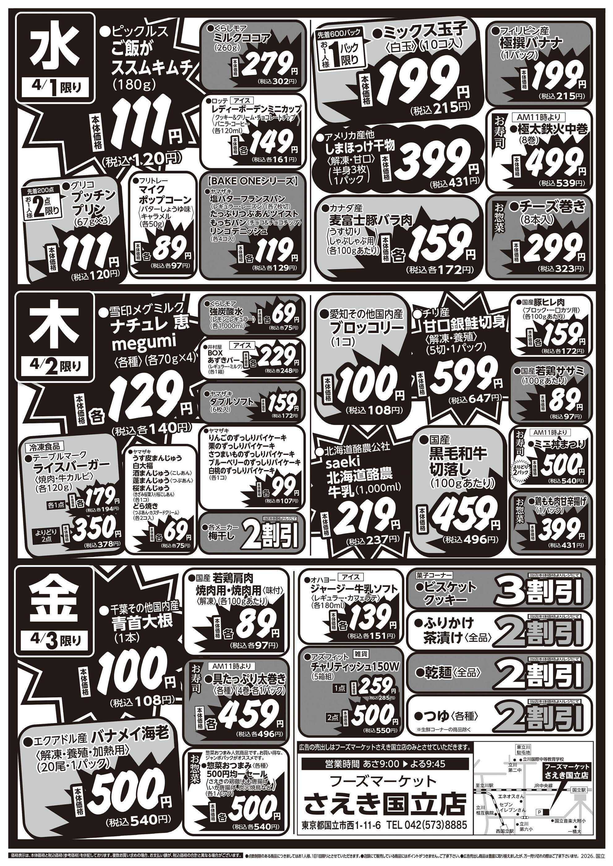 フーズマーケットさえき国立店今週のチラシ(2026年3月30日〜4月5日)
