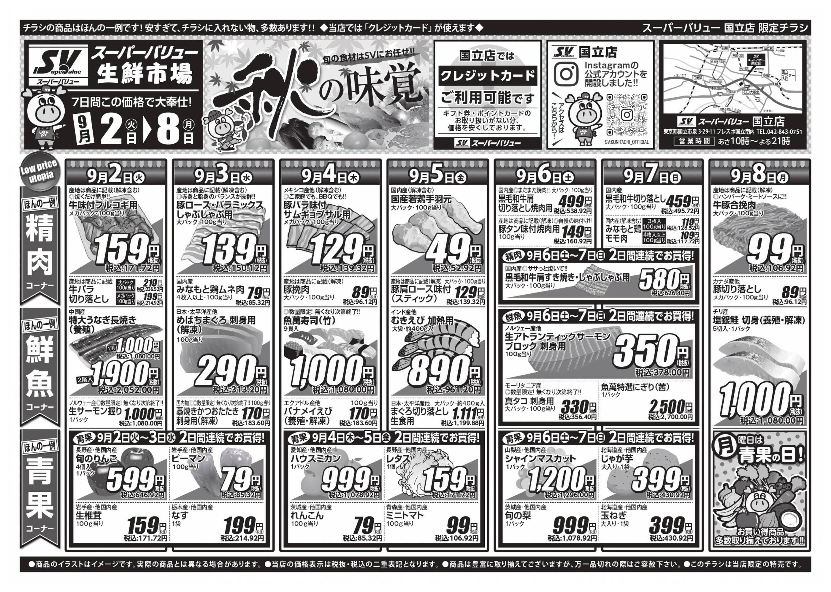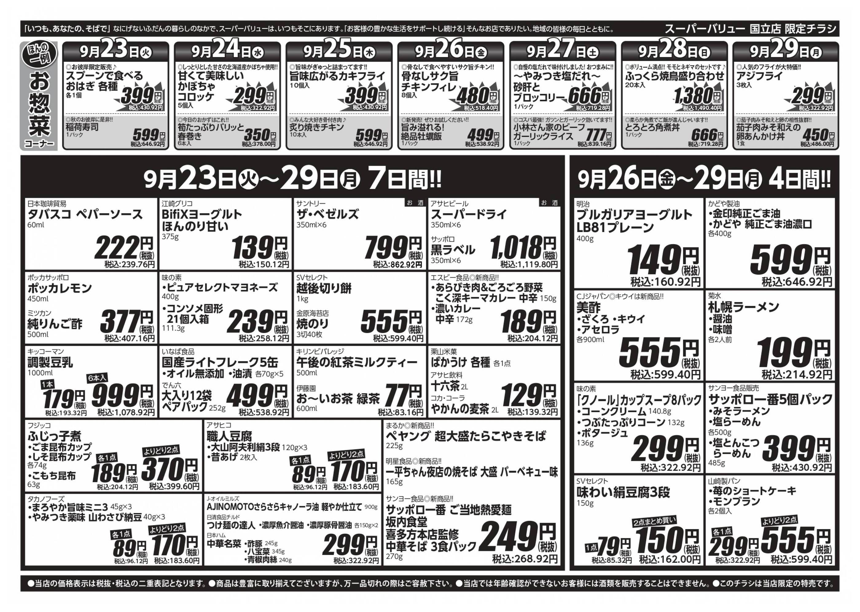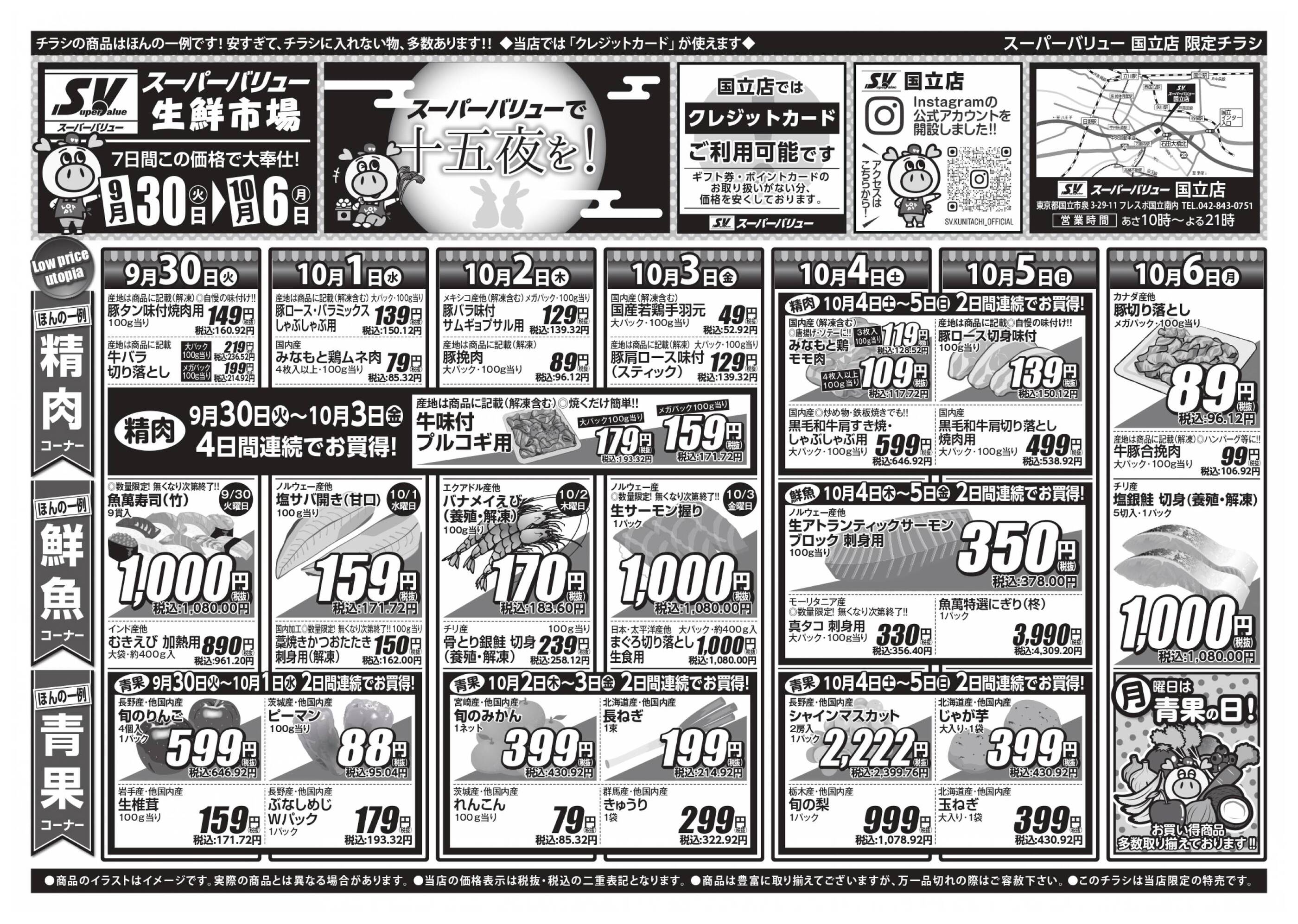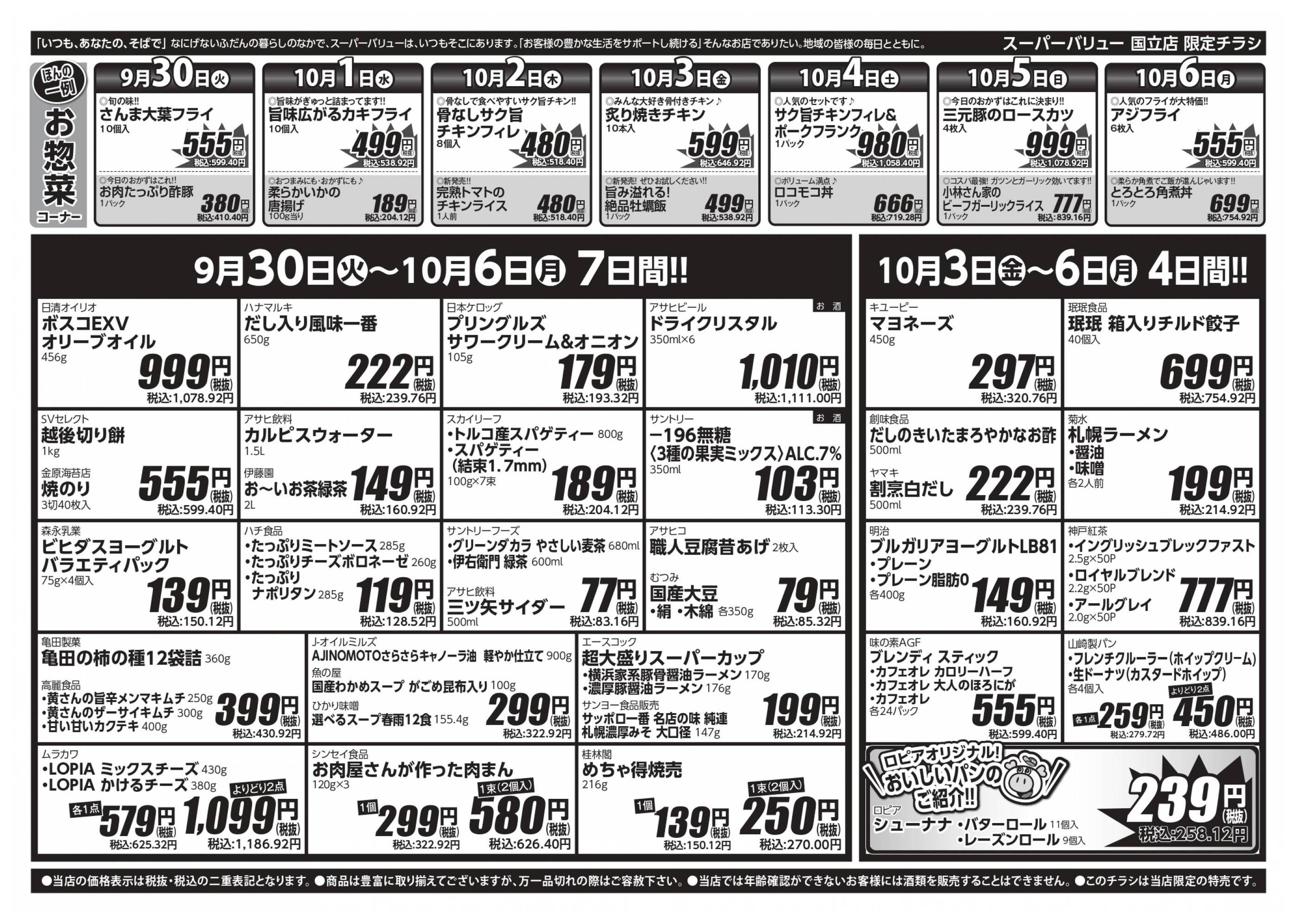 スーパーバリュー国立店今週のチラシ(2025年9月29日〜10月5日)