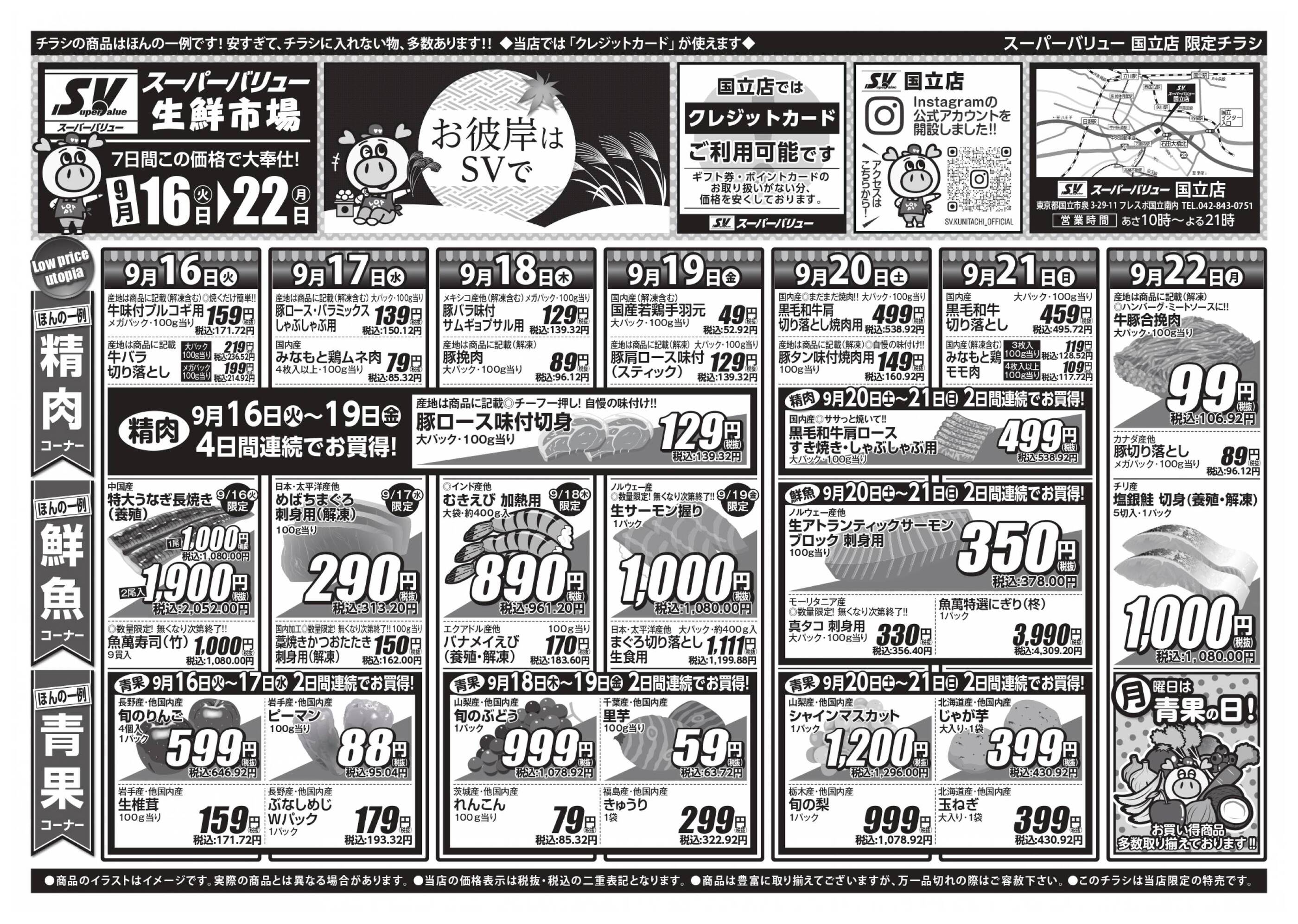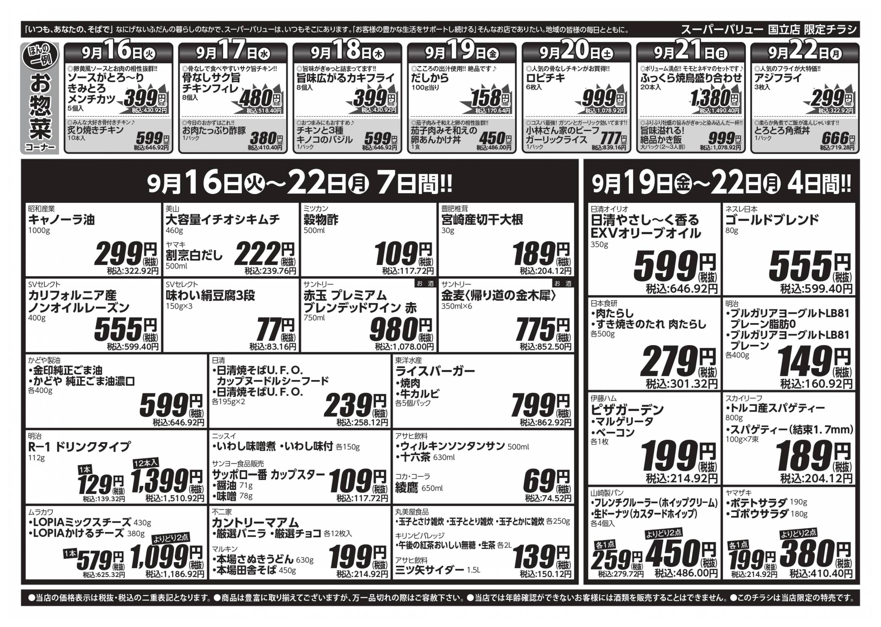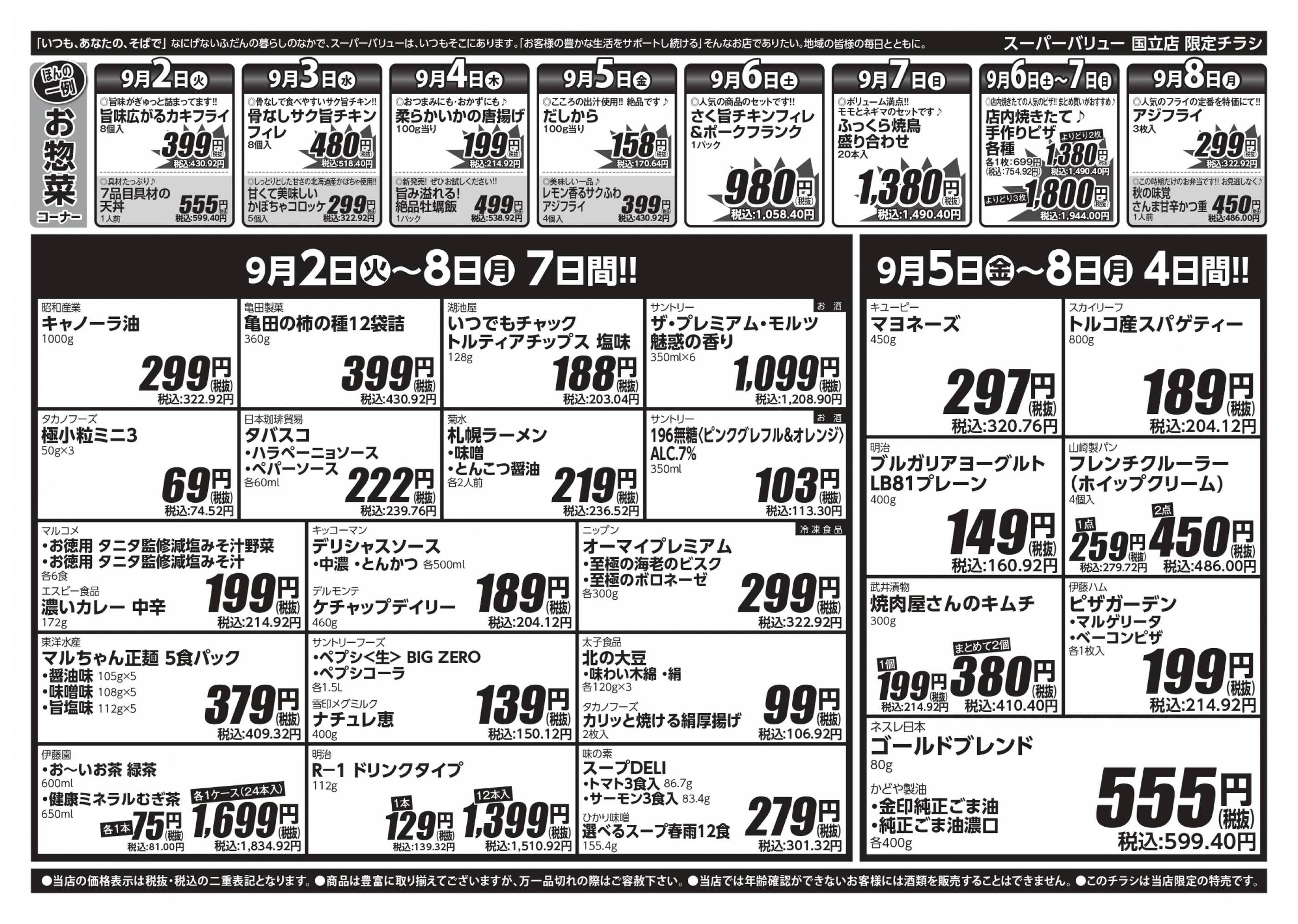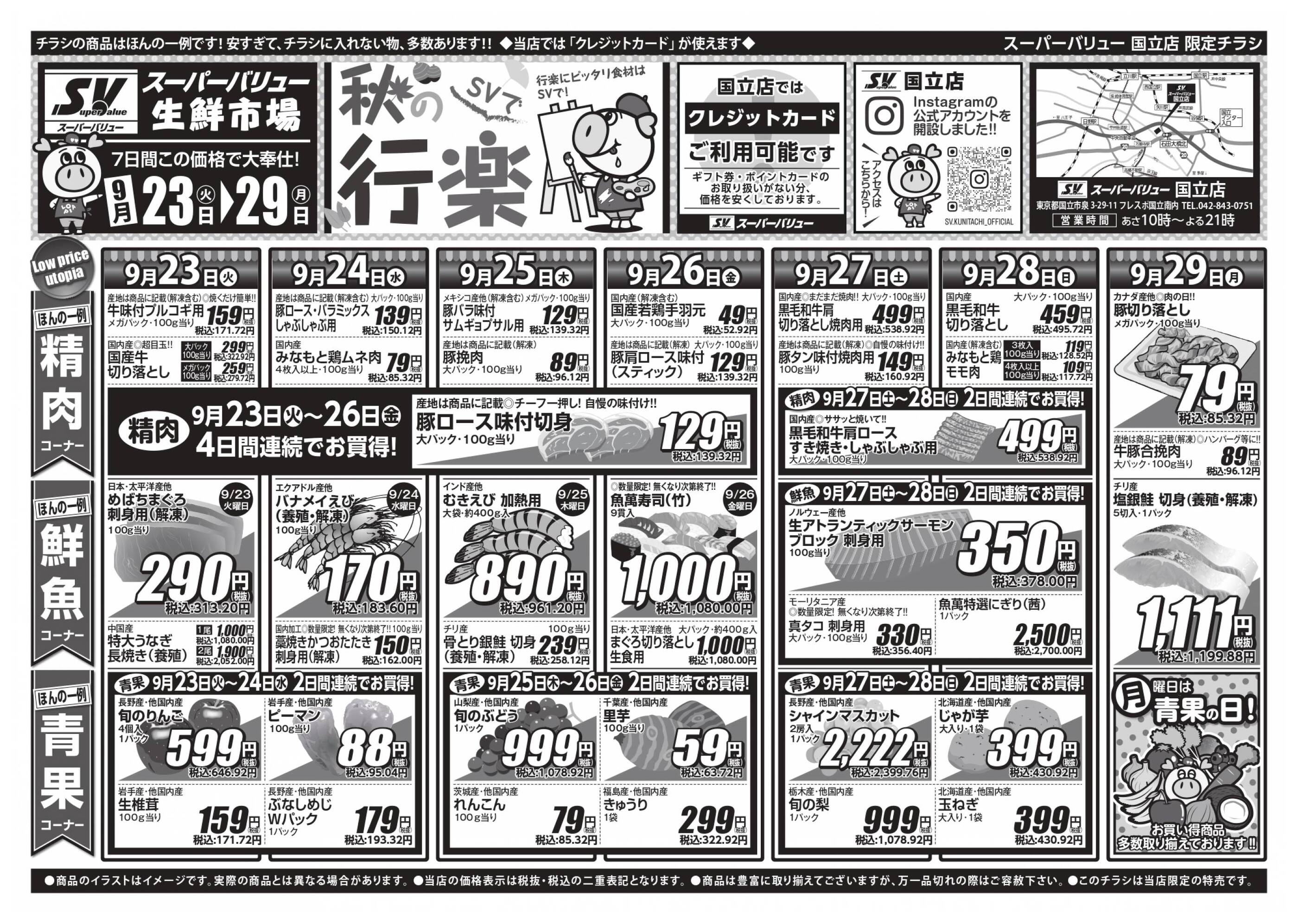 スーパーバリュー国立店今週のチラシ(2025年9月29日〜10月5日)
