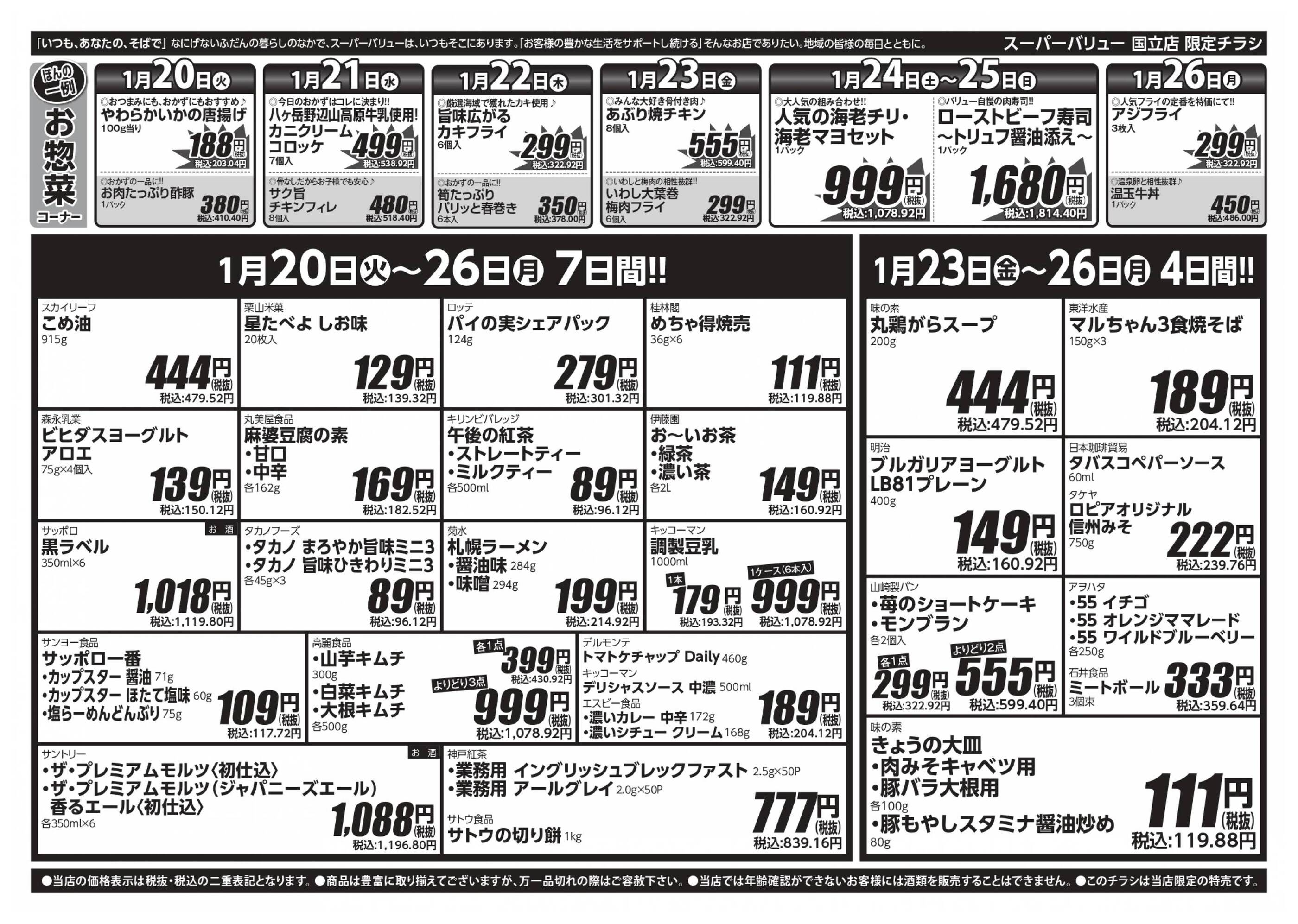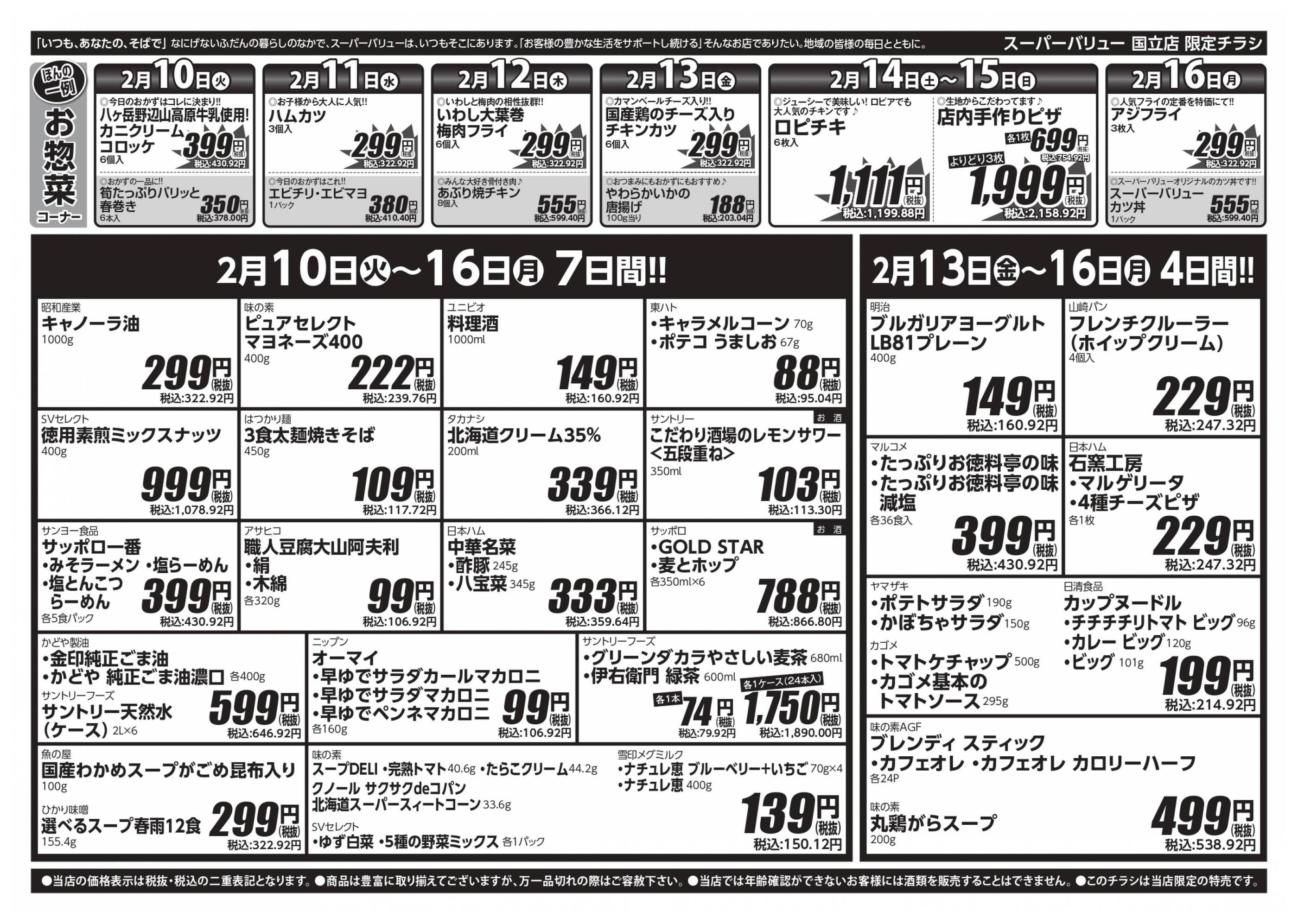 スーパーバリュー国立店今週のチラシ(2026年2月9日〜2月15日)