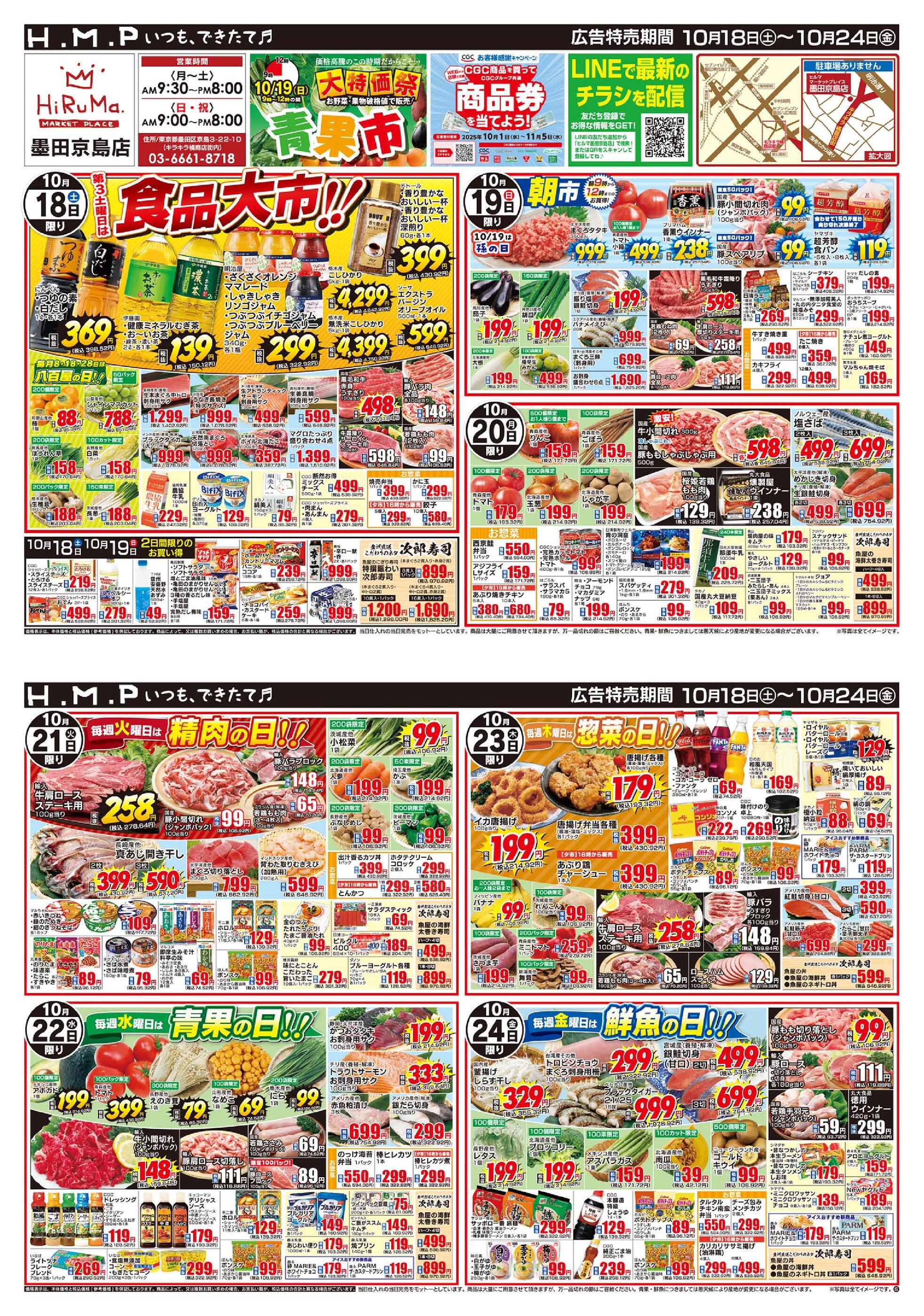 ヒルママーケットプレイス墨田京島店今週のチラシ(2025年10月20日〜10月26日)