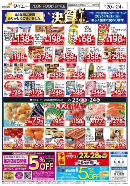 ※「店舗の掲載内容について」チラシガイドに掲載している情報は、独自に調査した内容及びユーザーから頂いた情報を掲載しています。お気づきの点がございましたら「お問い合わせ」よりご連絡ください。また店舗の営業状況、商品に関するお問い合わせは直接店舗事業者にご確認ください。