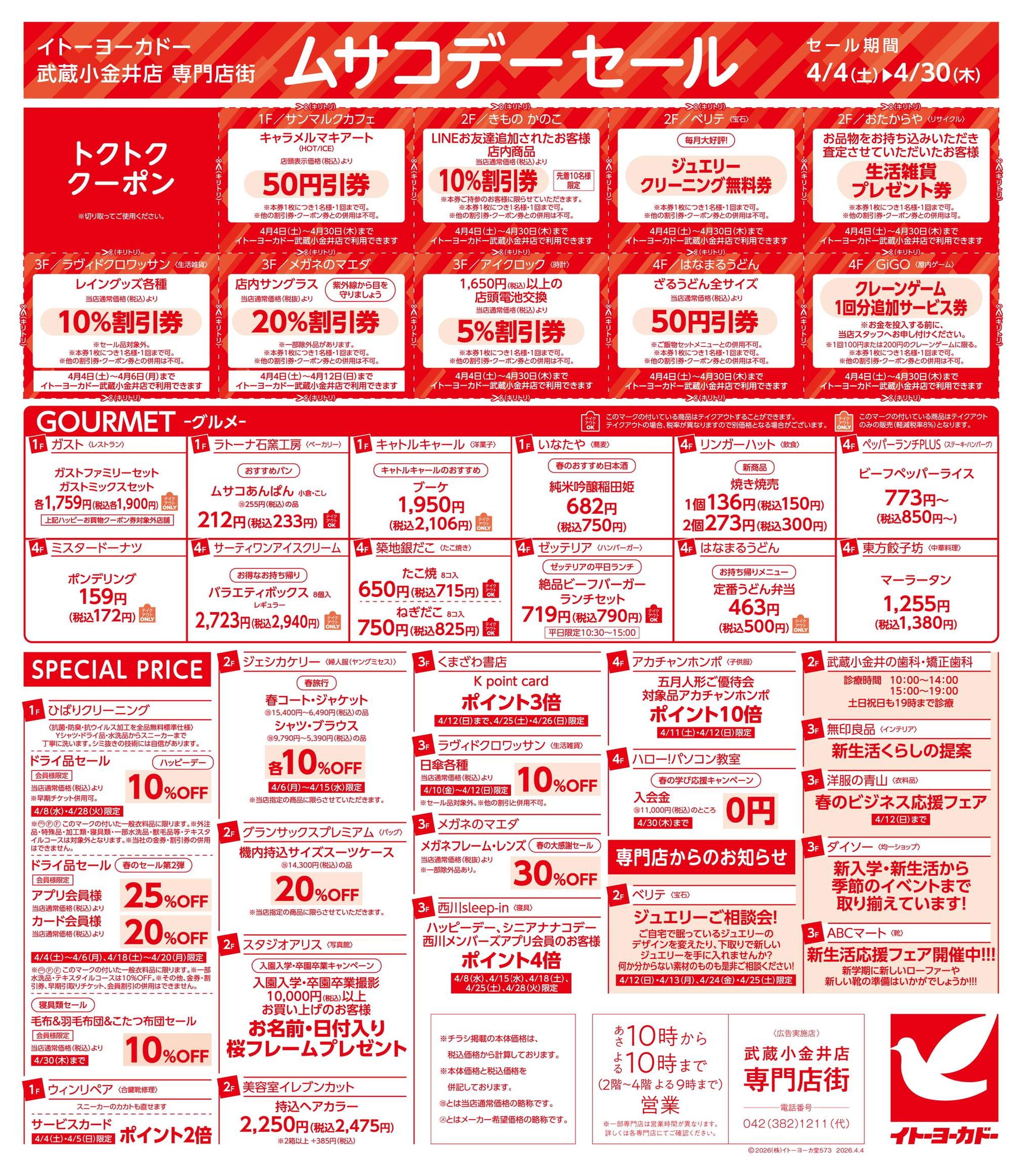 - 4/4(土)~4/30(木) 武蔵小金井店専門店街 ムサコかわら版4月号 (2枚)