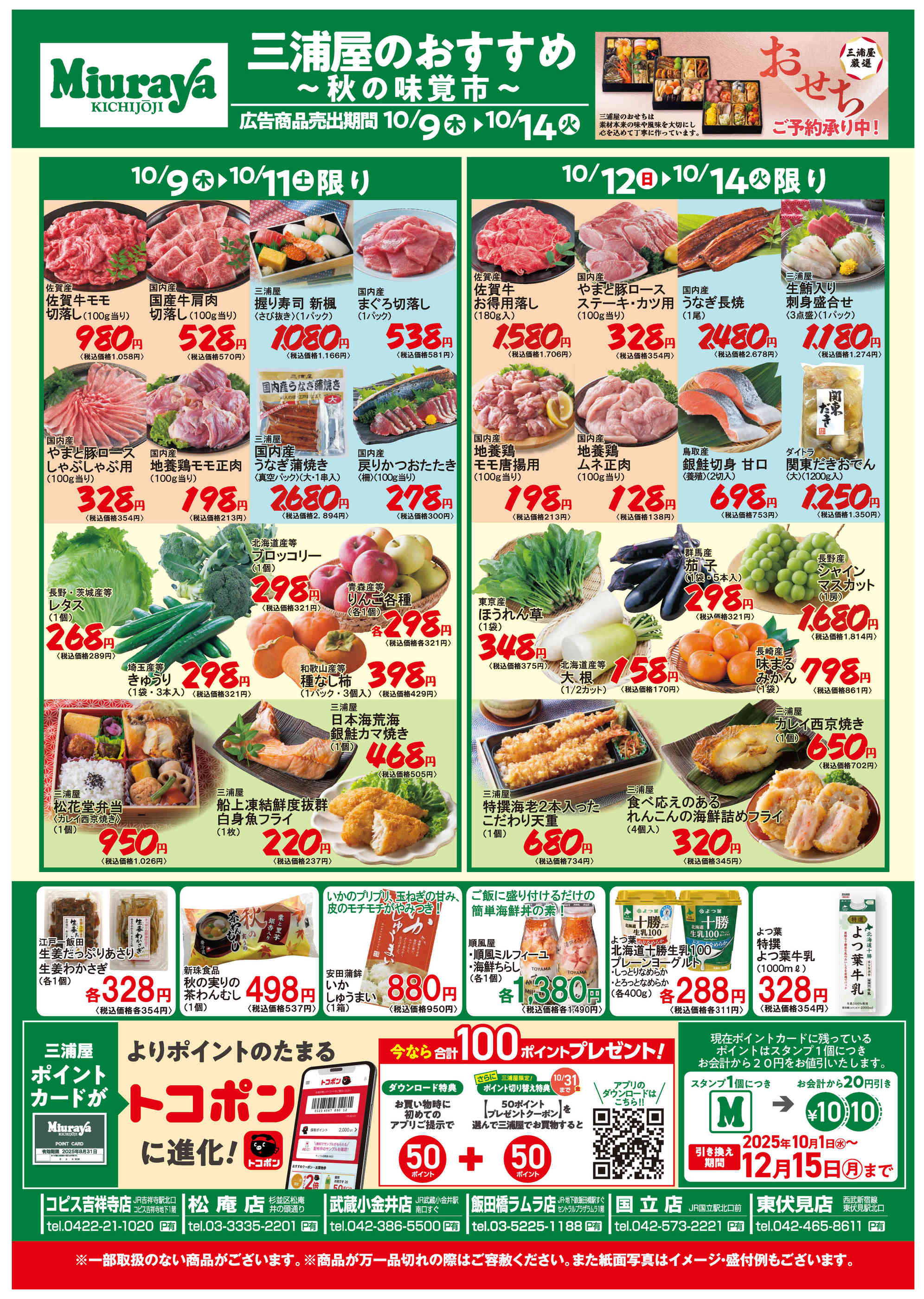 三浦屋 武蔵小金井店今週のチラシ(2025年10月6日〜10月12日)