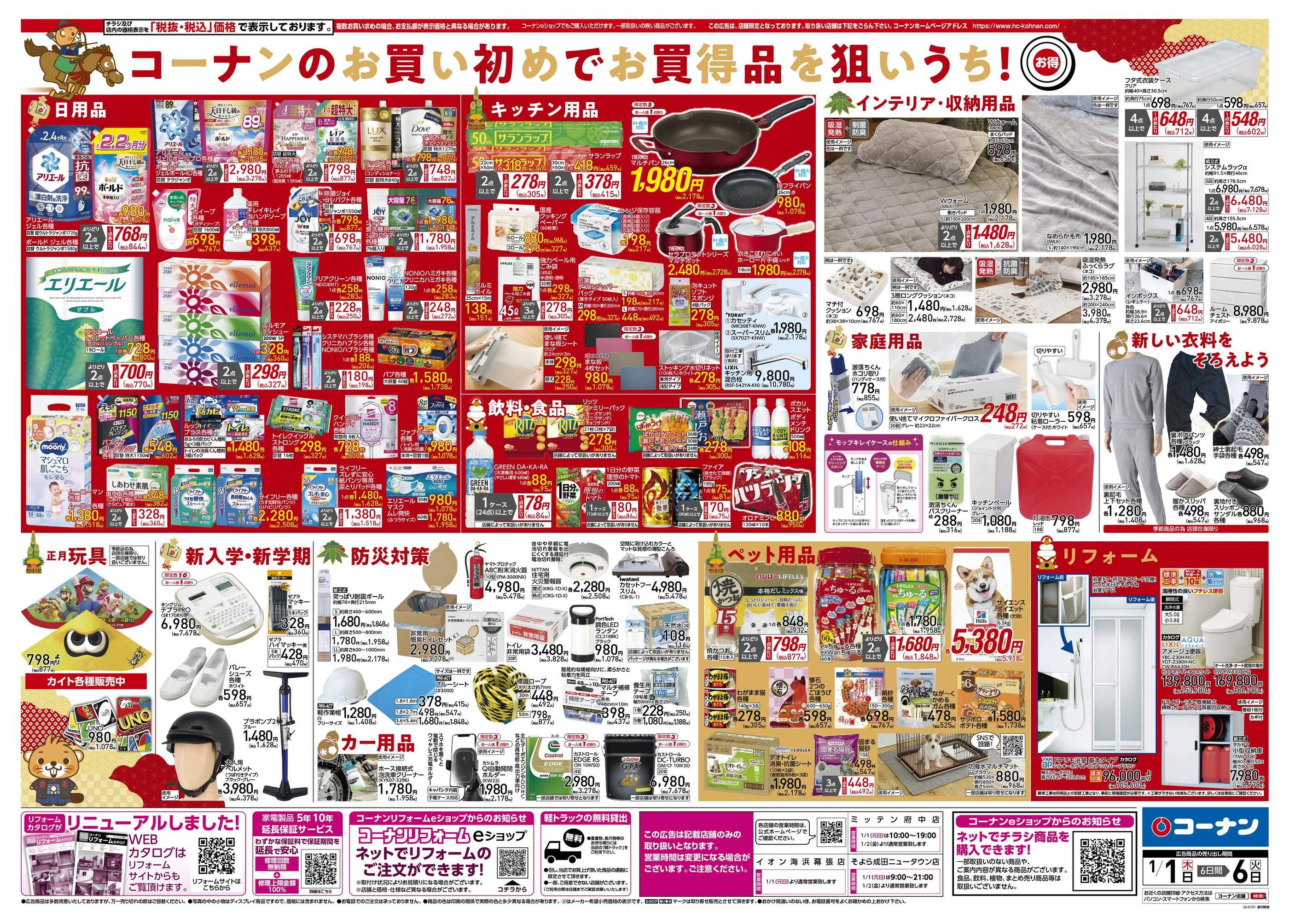 ホームセンターコーナンミッテン府中店今週のチラシ(2026年1月12日〜1月18日)