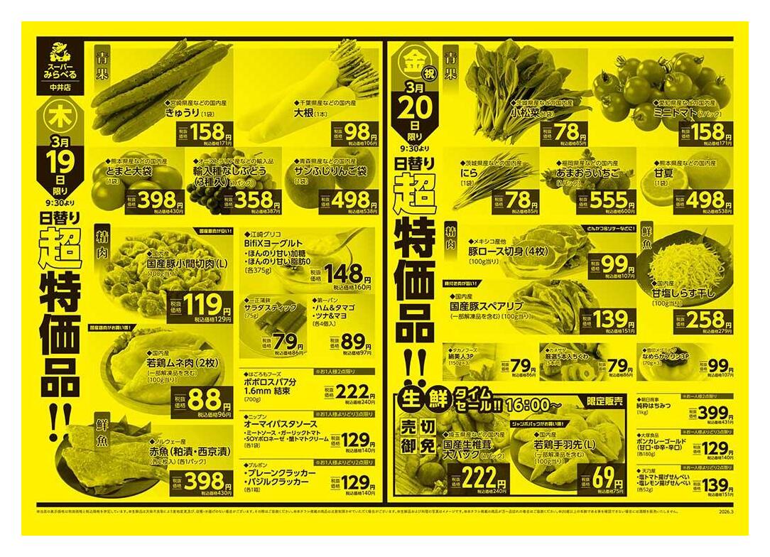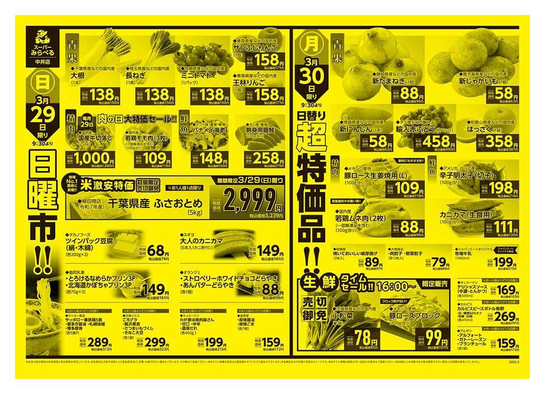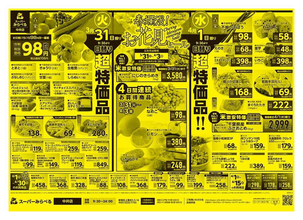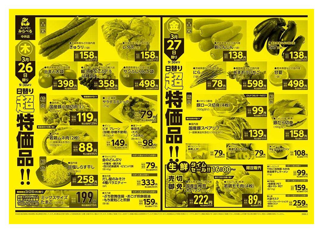 スーパーみらべる中井店今週のチラシ(2026年3月30日〜4月5日)
