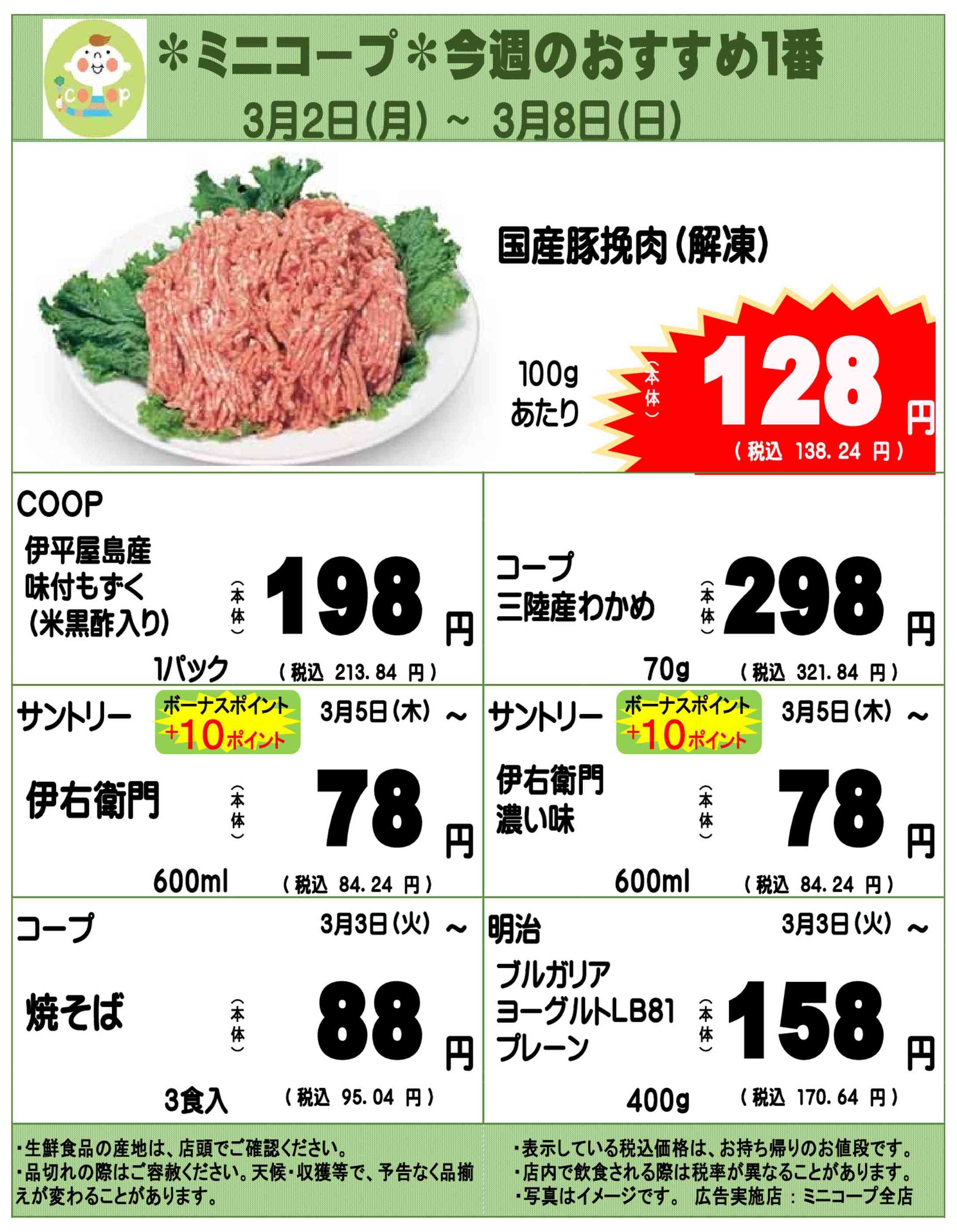 ミニコープ吹上店今週のチラシ(2026年3月2日〜3月8日)