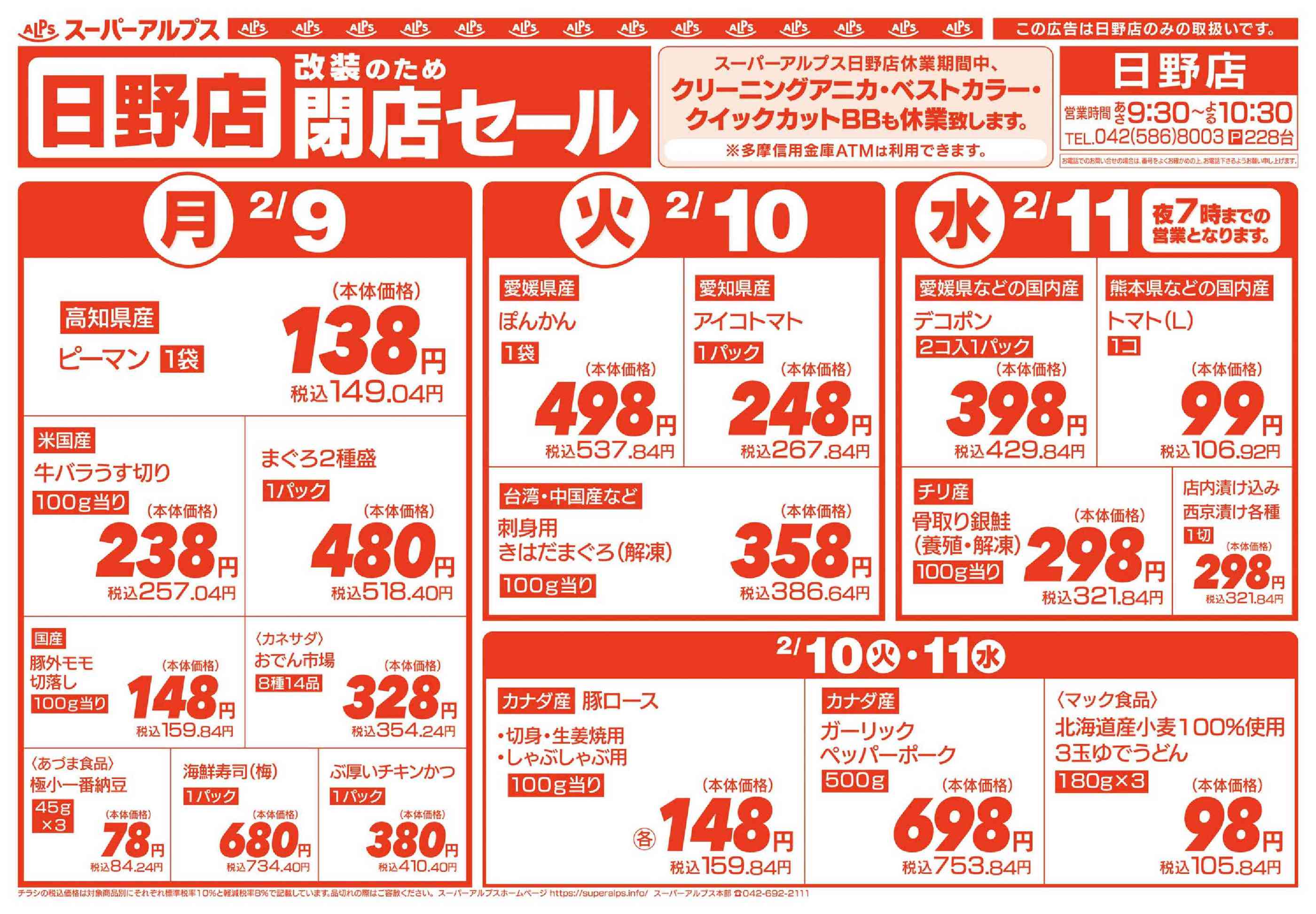 スーパーアルプス日野店今週のチラシ(2026年2月9日〜2月15日)
