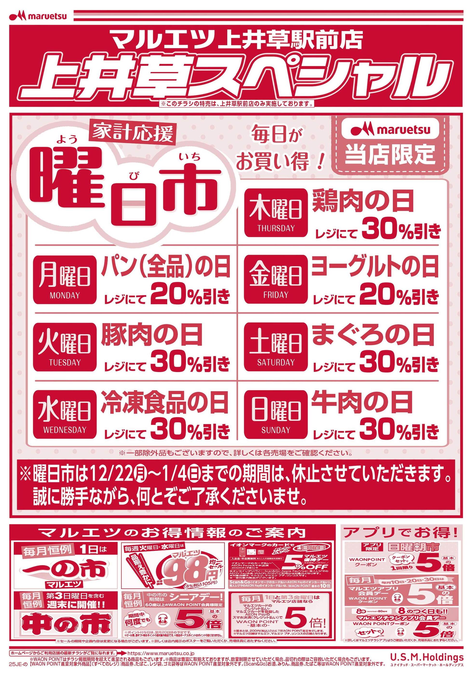 特売やセール情報など最新のチラシを掲載中。(4種類、7枚のチラシを掲載しています)