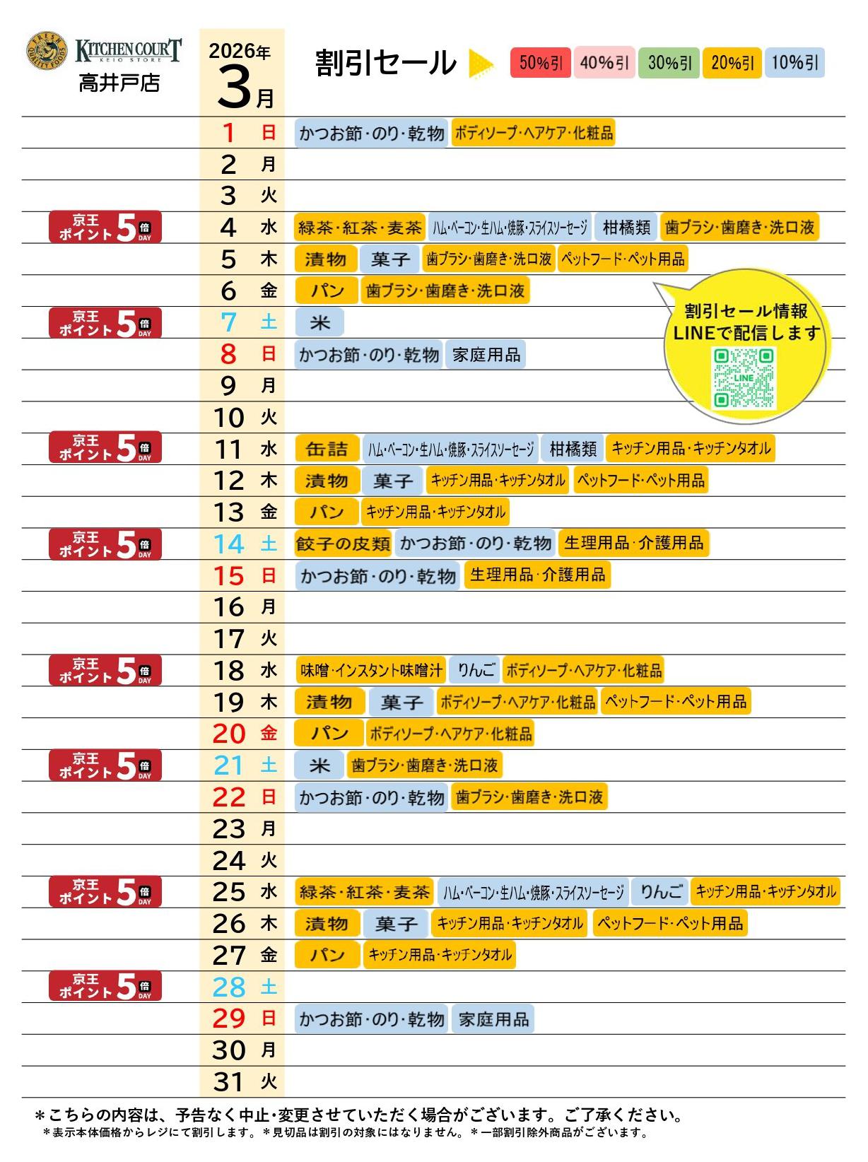 キッチンコート高井戸店今週のチラシ(2026年3月2日〜3月8日)