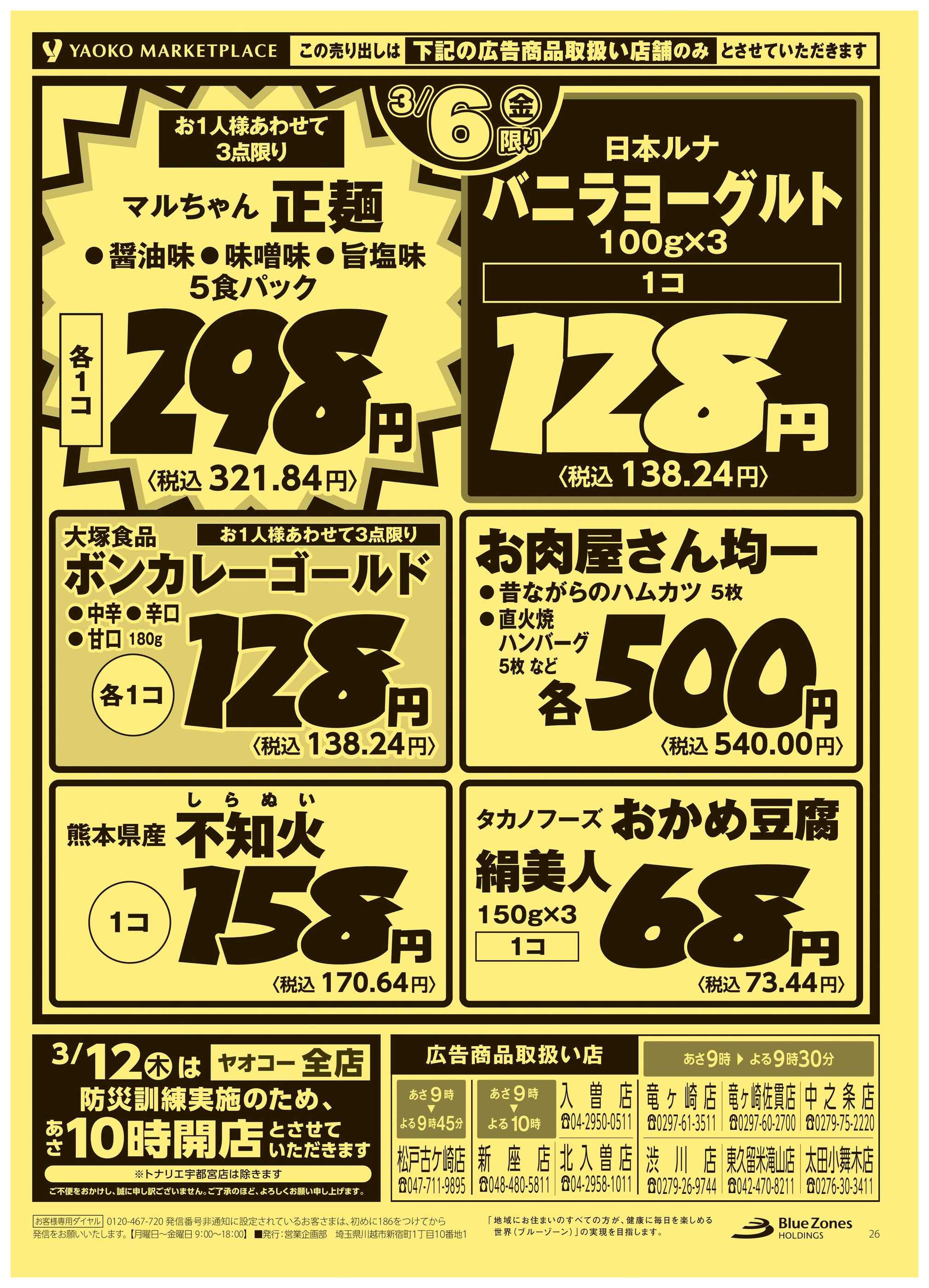 ヤオコー東久留米滝山店今週のチラシ(2026年3月2日〜3月8日)
