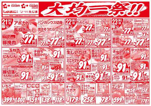 特売やセール情報など最新のチラシを掲載中。(2種類、3枚のチラシを掲載しています)