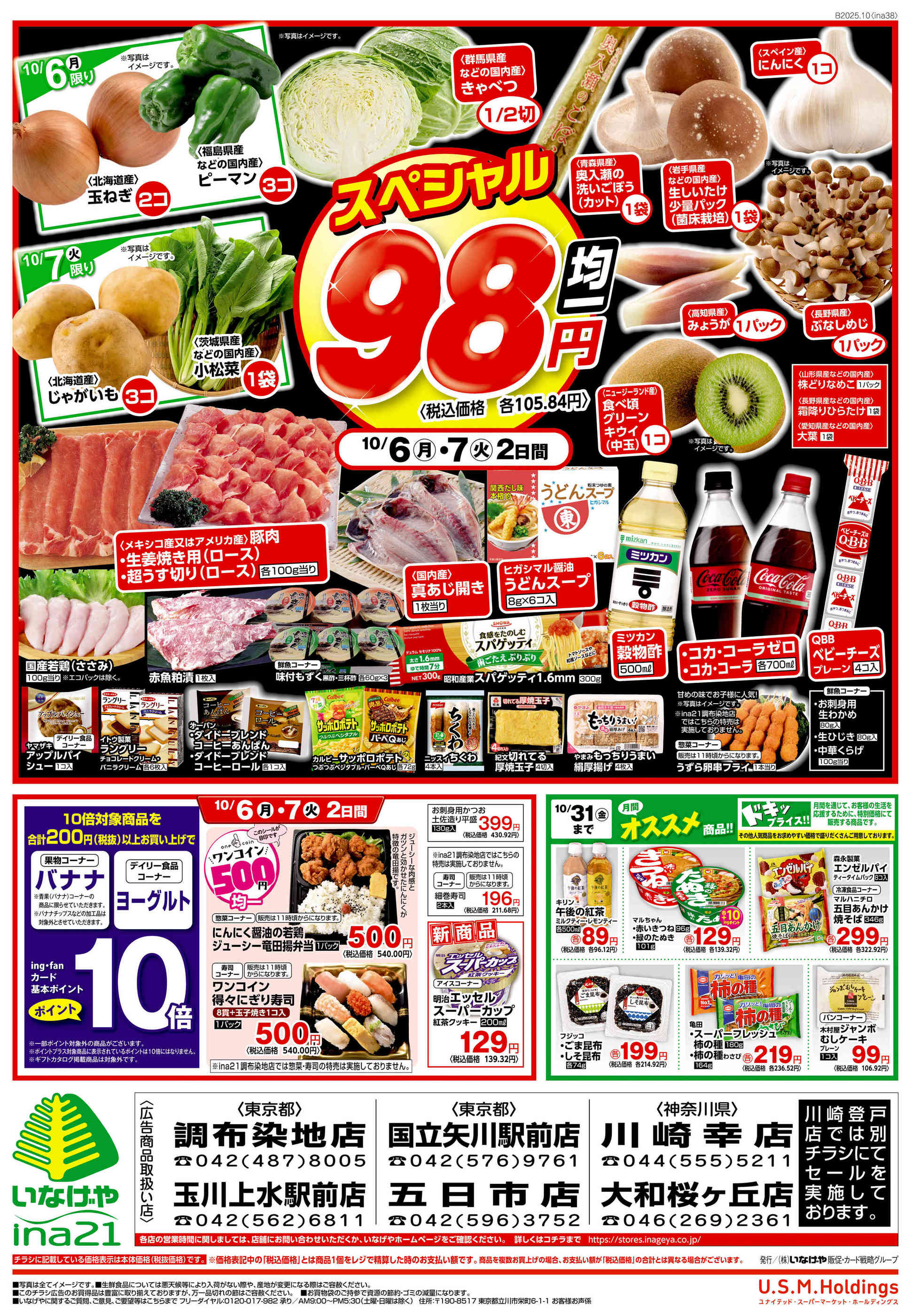 いなげやina21玉川上水駅前店今週のチラシ(2025年9月29日〜10月5日)