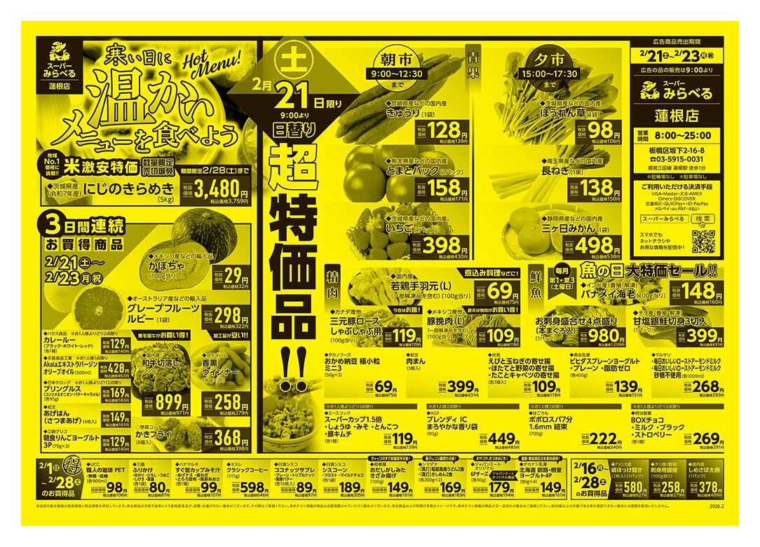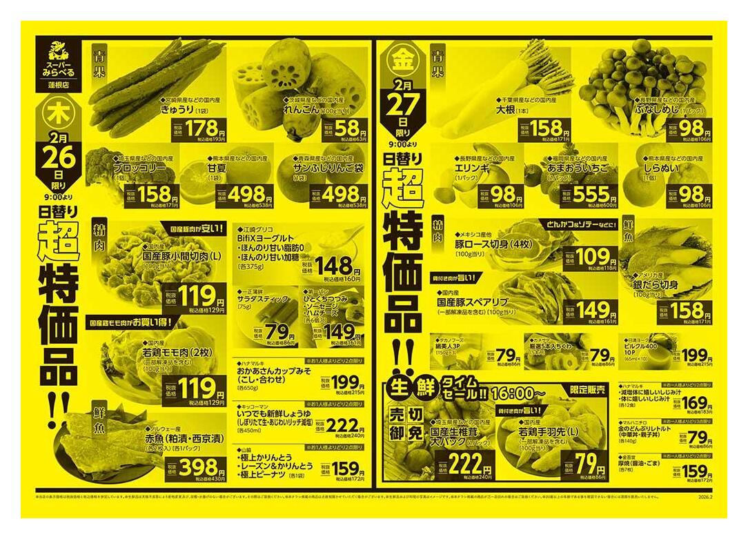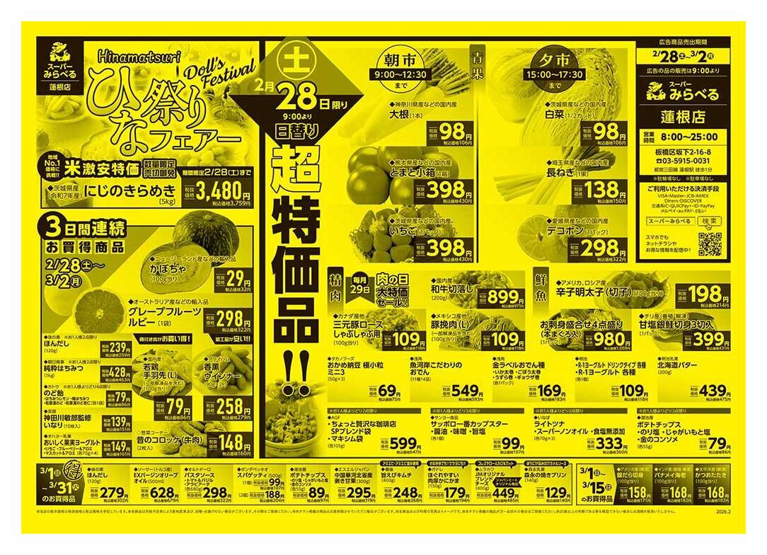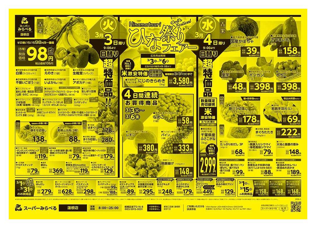 スーパーみらべる蓮根店今週のチラシ(2026年3月9日〜3月15日)