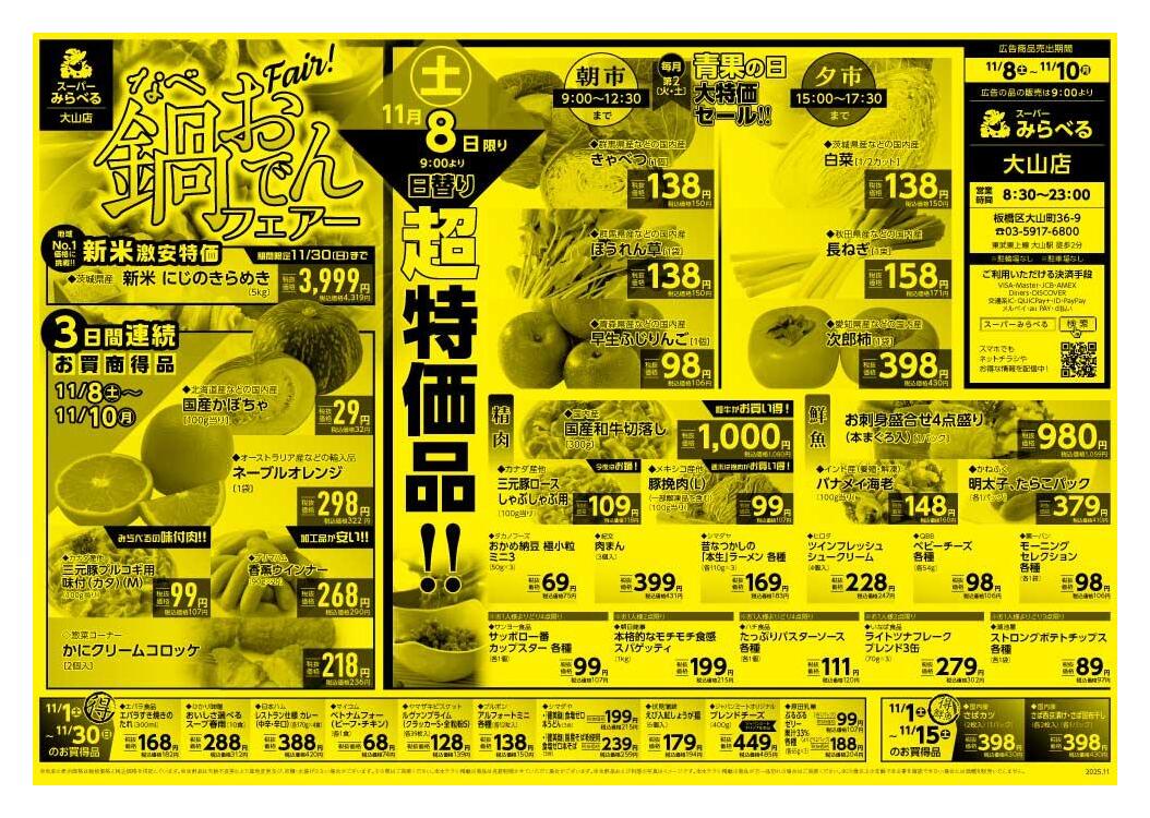 スーパーみらべる大山店今週のチラシ(2025年11月17日〜11月23日)
