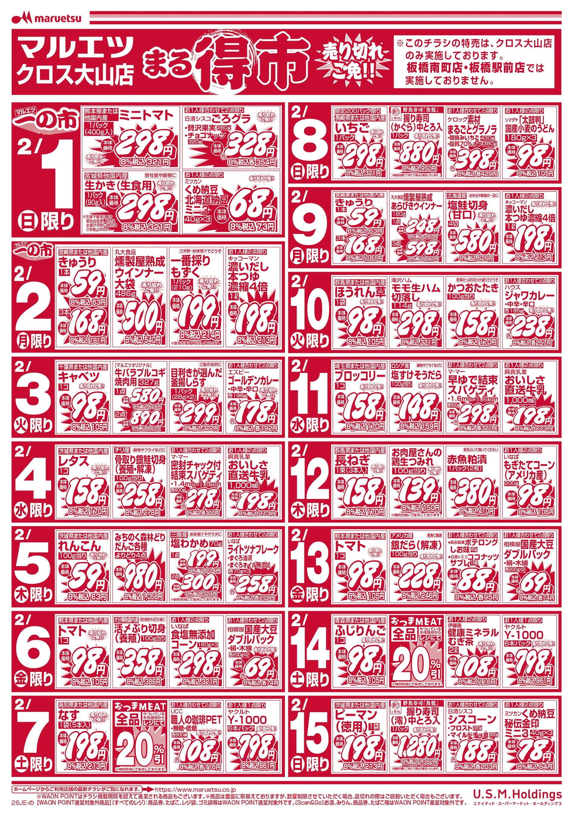 マルエツクロス大山店今週のチラシ(2026年2月9日〜2月15日)