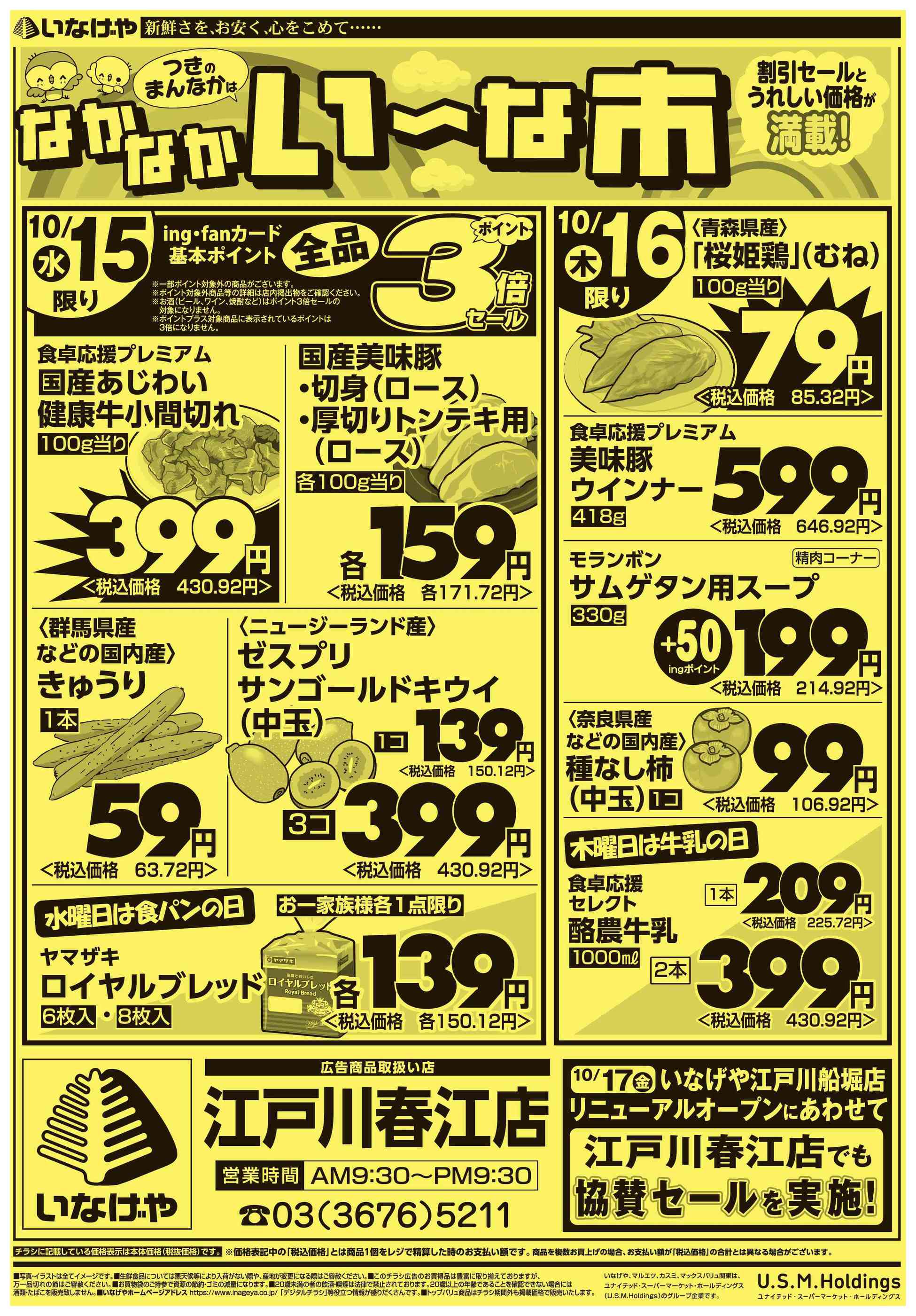 いなげや江戸川春江店今週のチラシ(2025年10月20日〜10月26日)