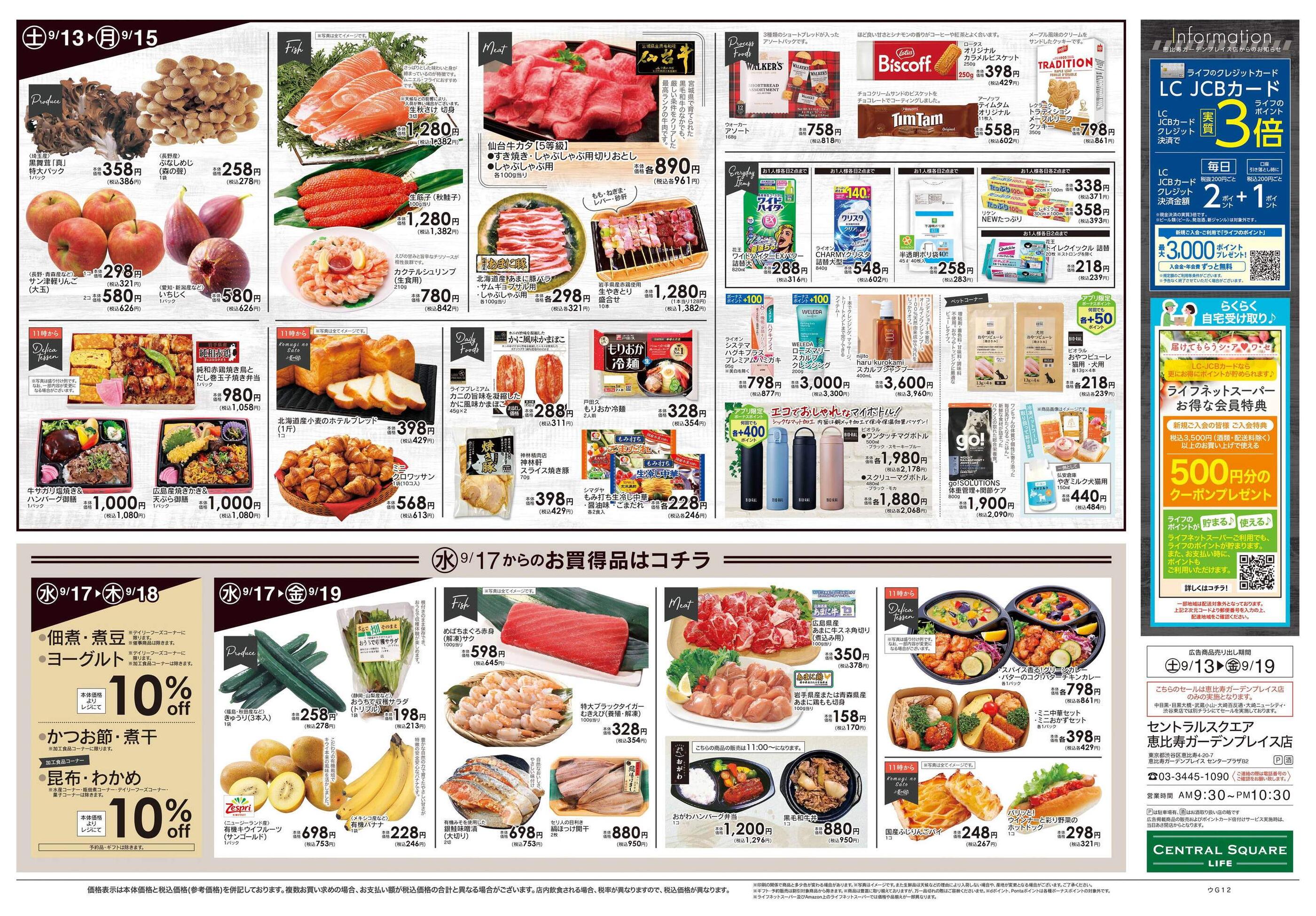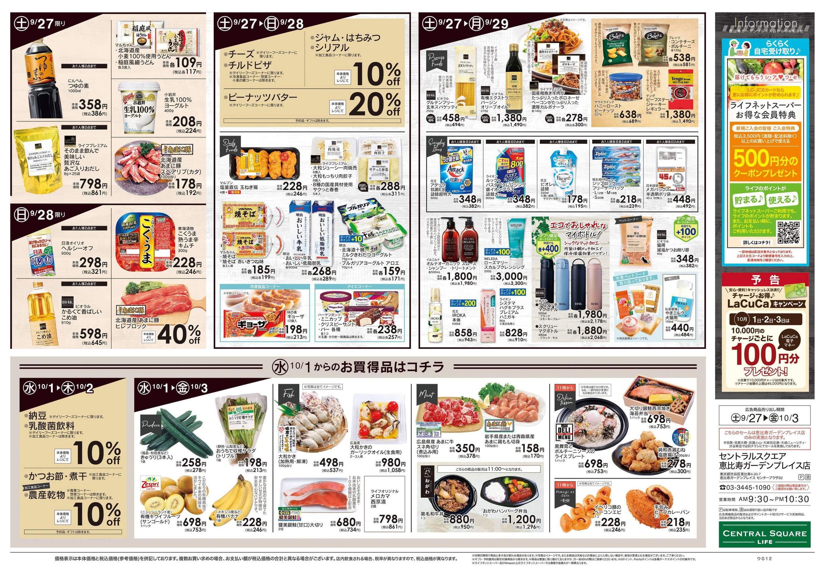 ライフセントラルスクエア恵比寿ガーデンプレイス店今週のチラシ(2025年10月6日〜10月12日)