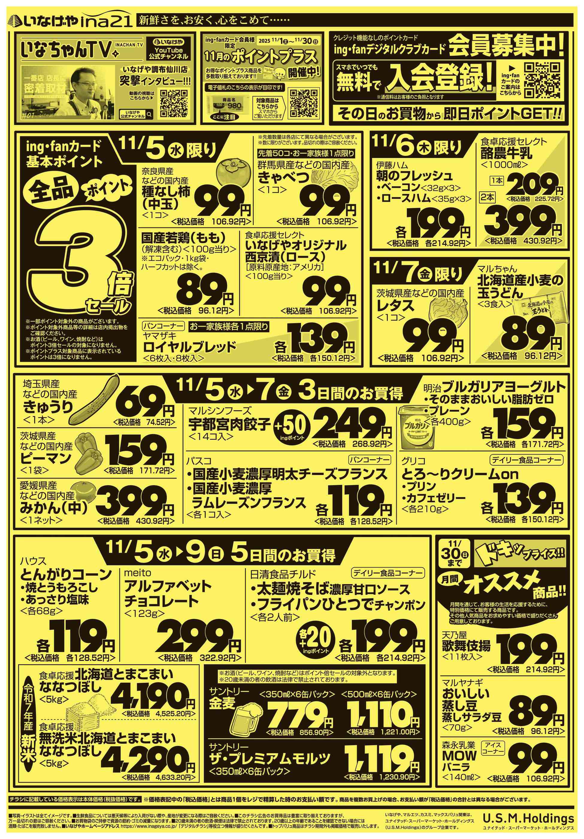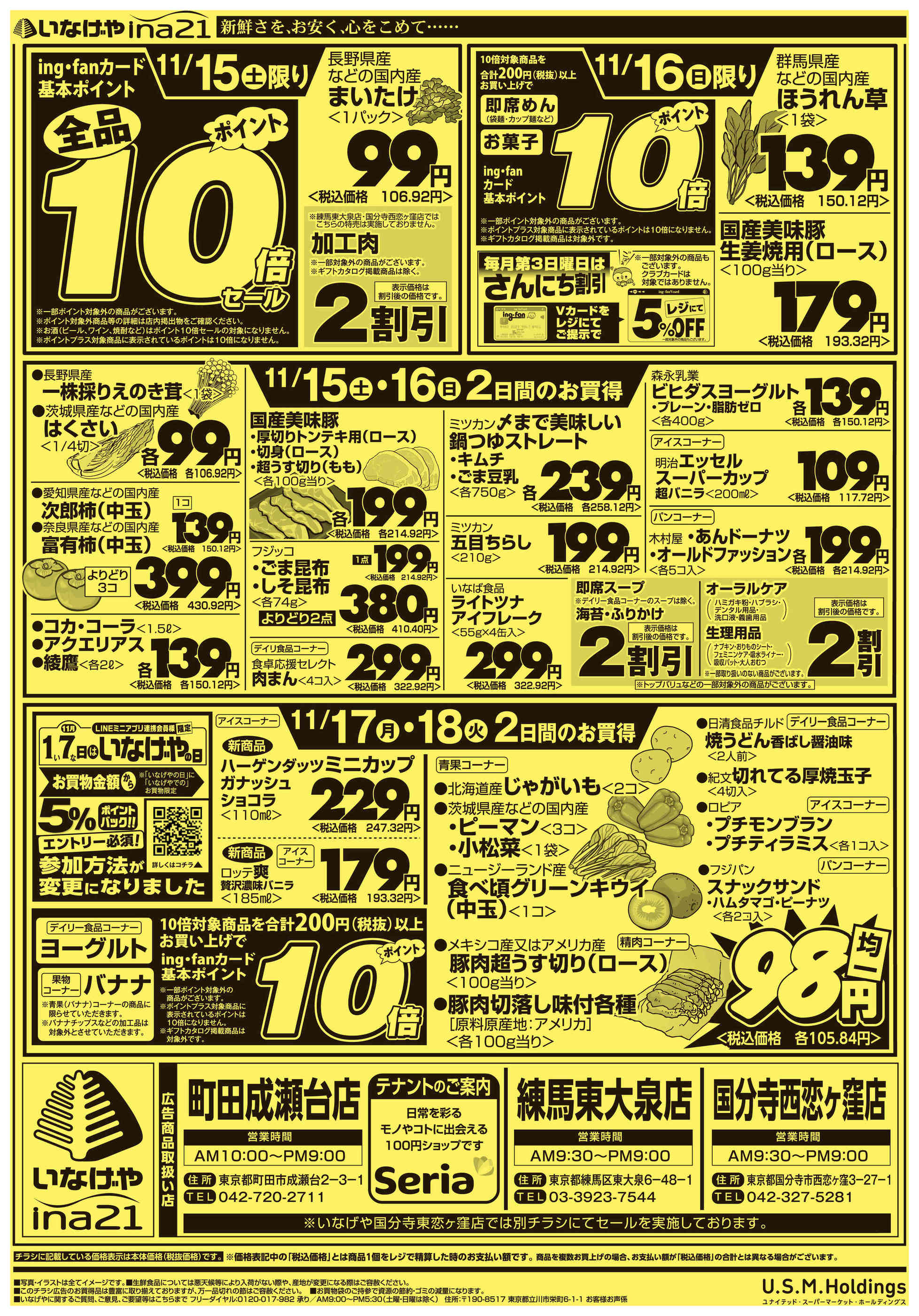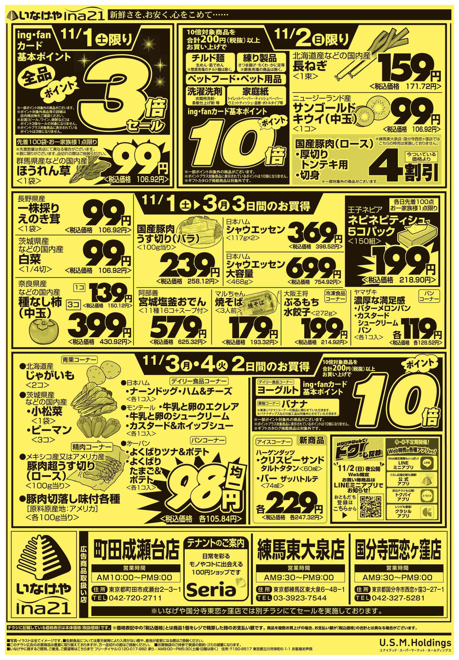 いなげやina21町田成瀬台店今週のチラシ(2025年11月10日〜11月16日)