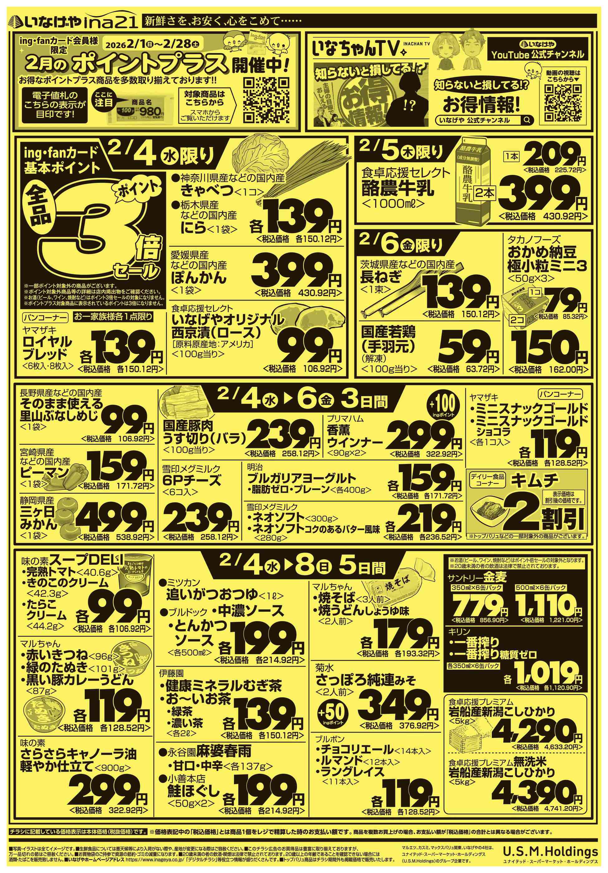 いなげやina21町田成瀬台店今週のチラシ(2026年2月9日〜2月15日)