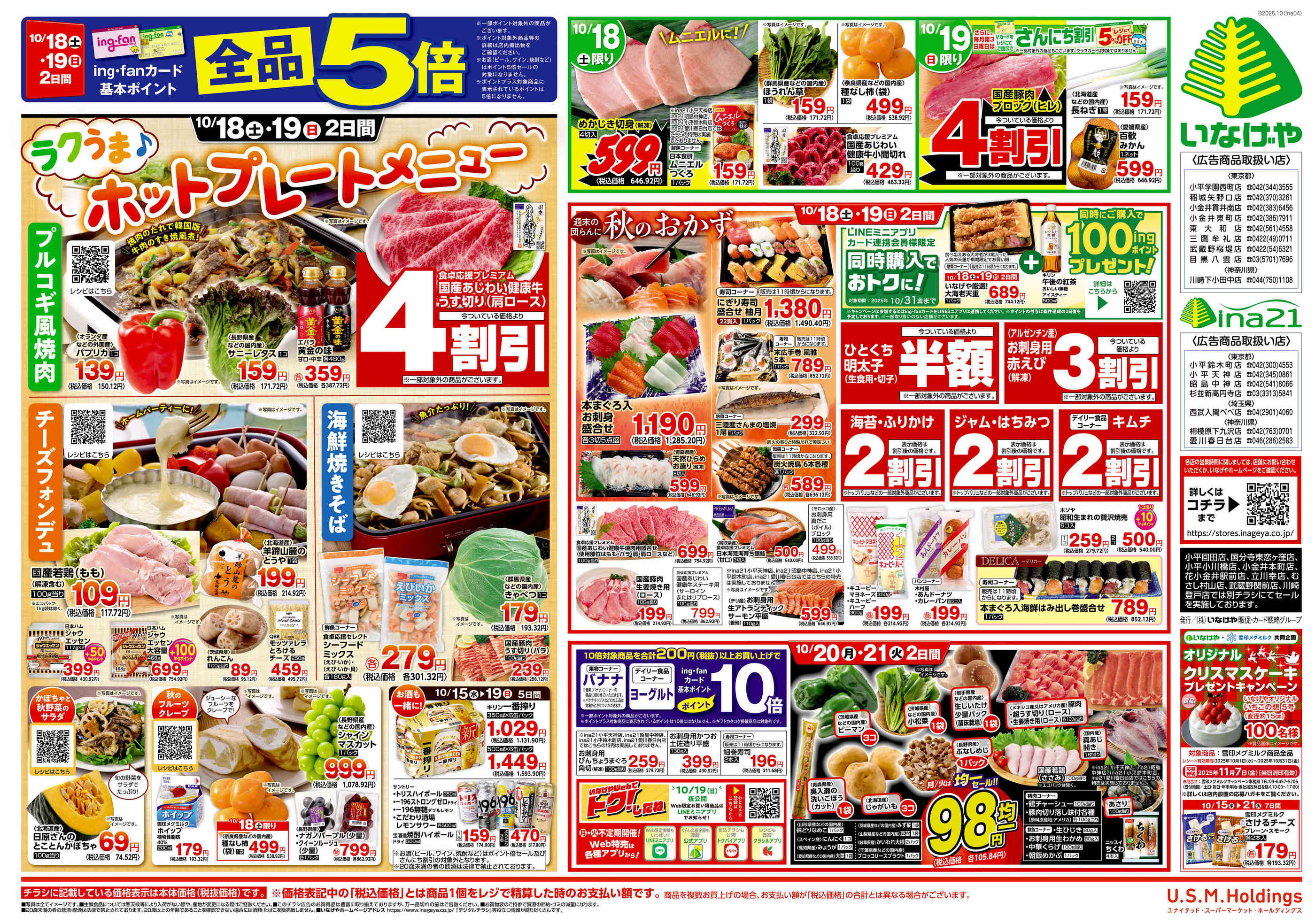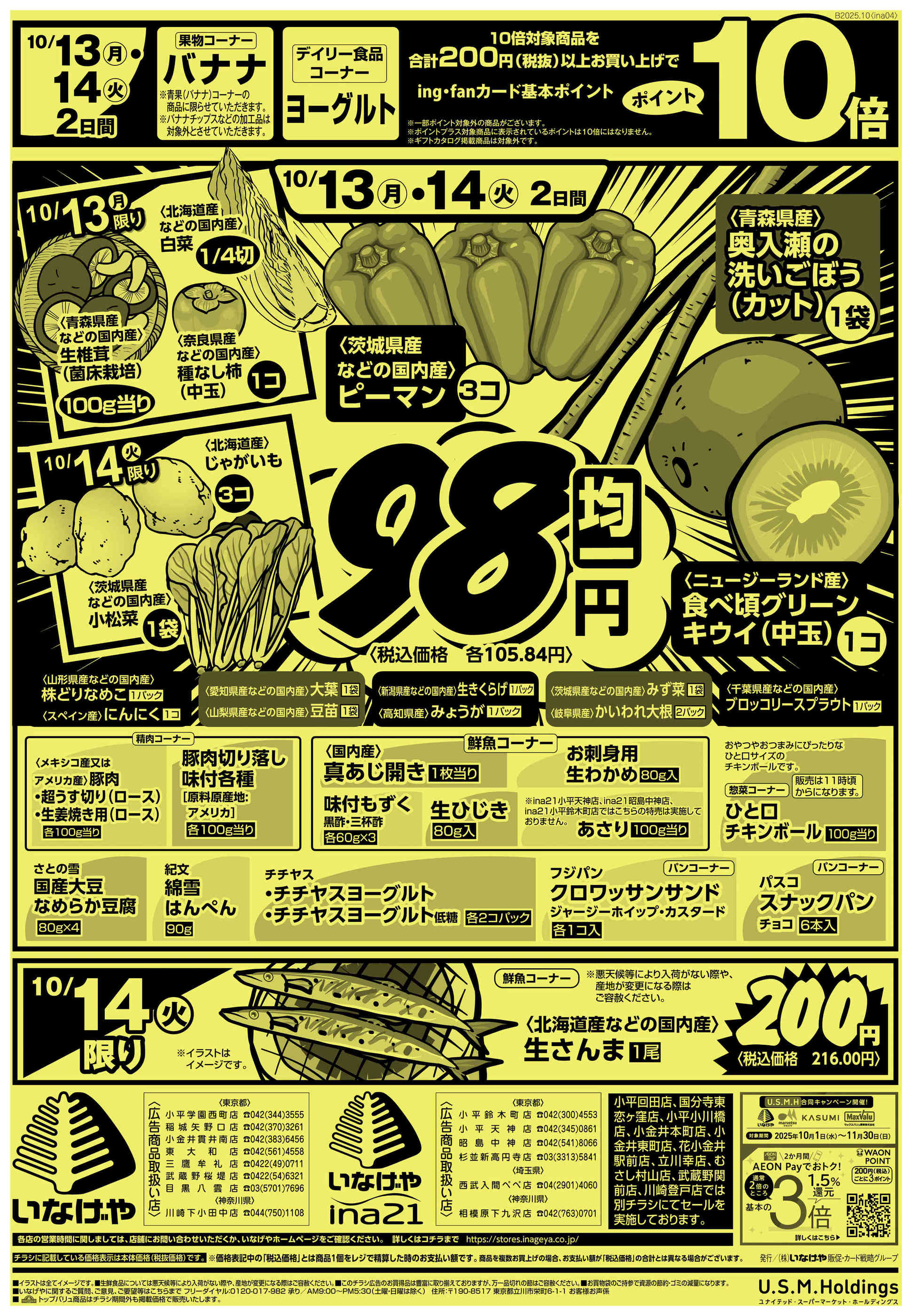 いなげや稲城矢野口店今週のチラシ(2025年10月13日〜10月19日)