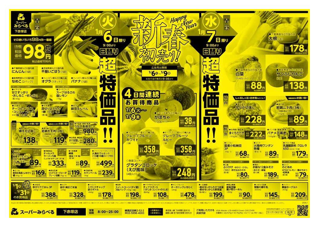 スーパーみらべる下赤塚店今週のチラシ(2026年1月5日〜1月11日)