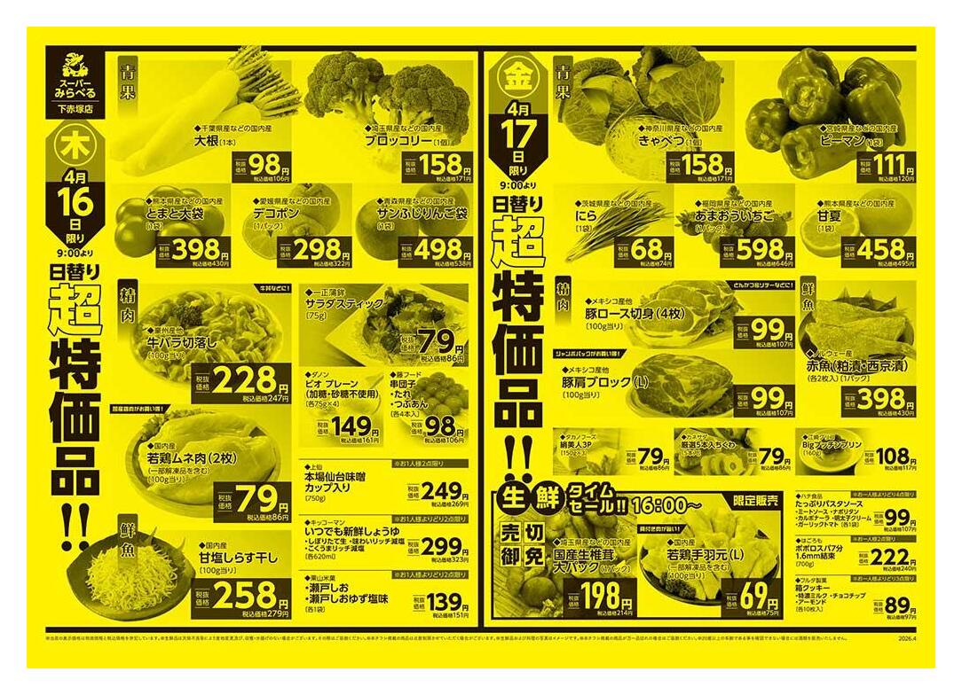 スーパーみらべる下赤塚店今週のチラシ(2026年4月20日〜4月26日)