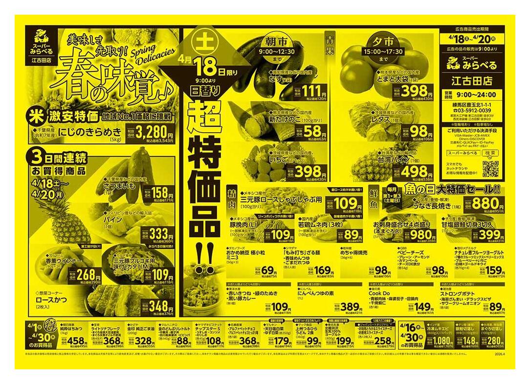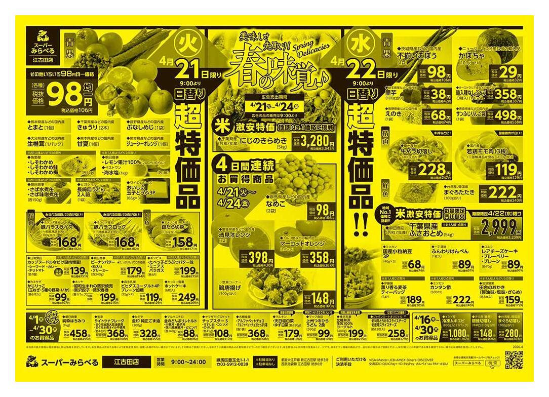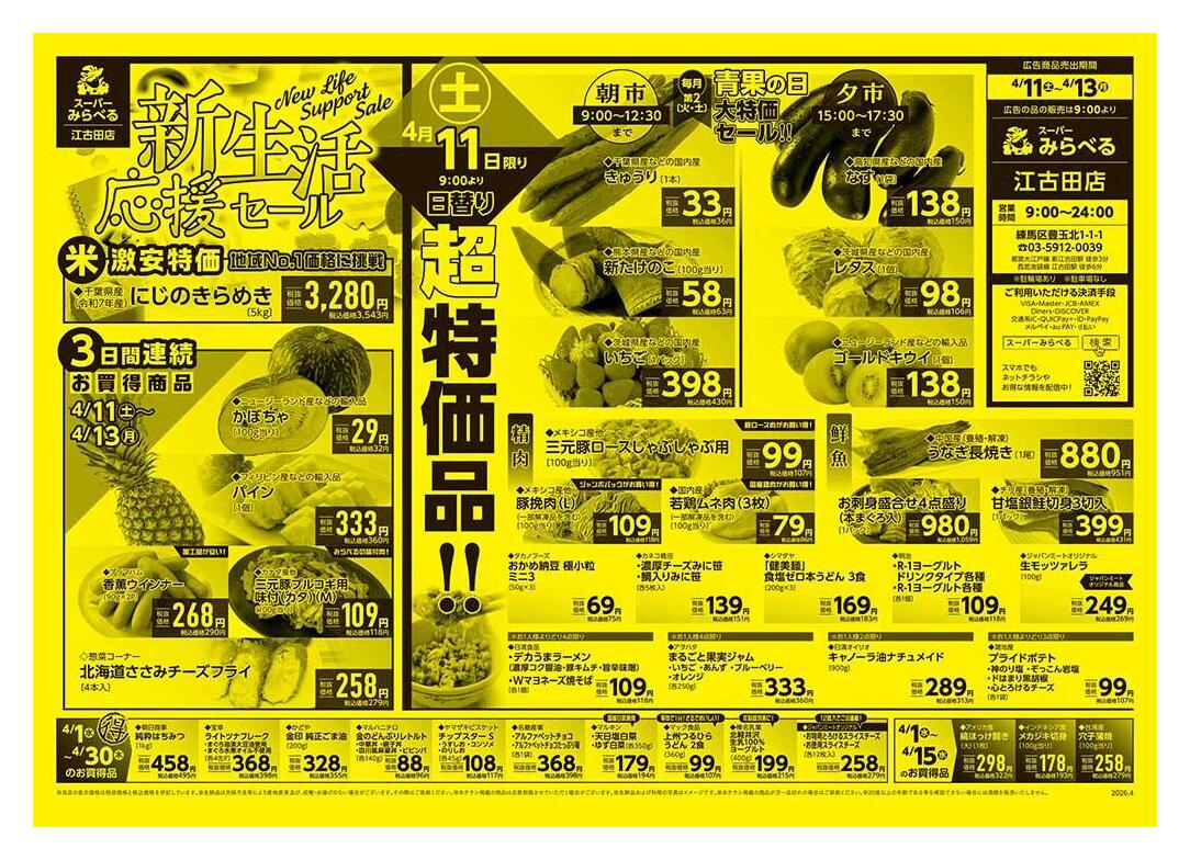 スーパーみらべる江古田店今週のチラシ(2026年4月20日〜4月26日)