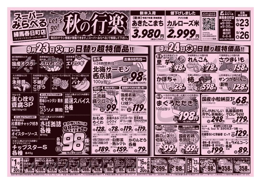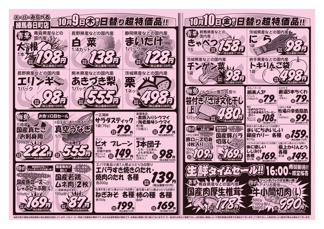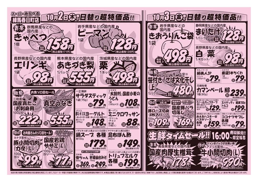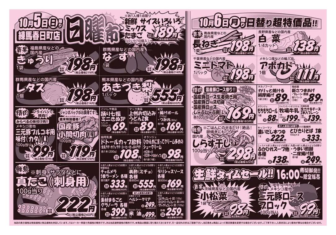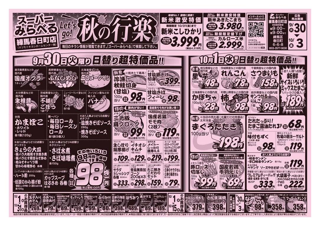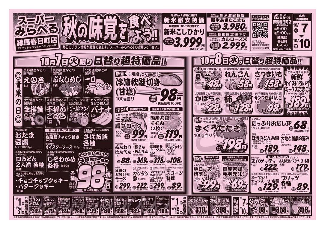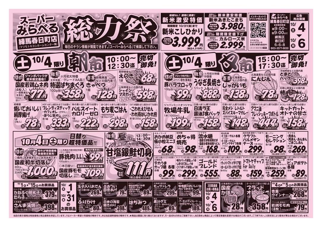 スーパーみらべる練馬春日町店今週のチラシ(2025年10月6日〜10月12日)
