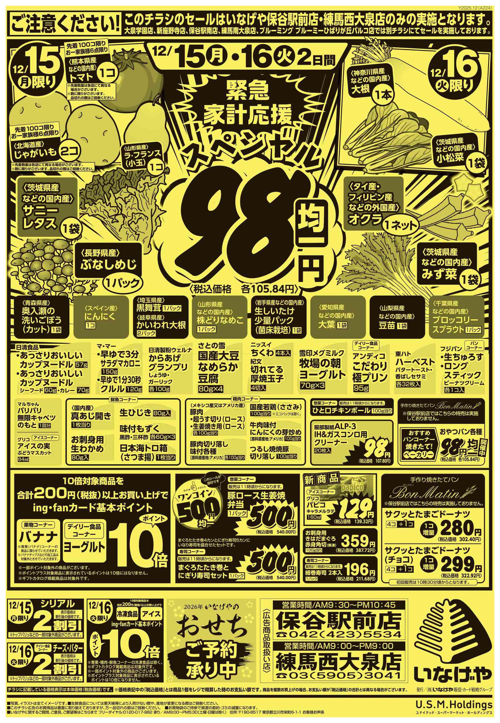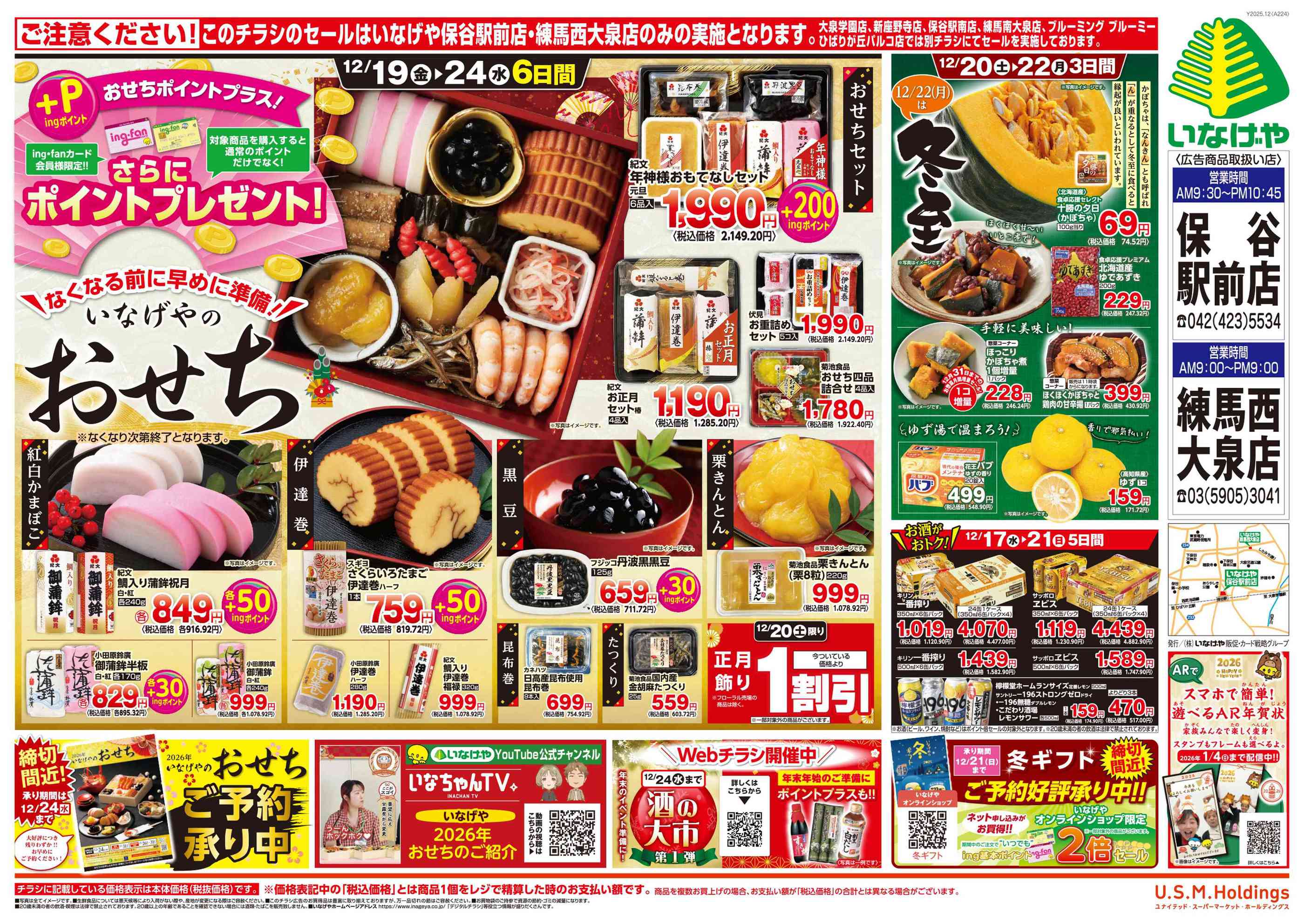 いなげや練馬西大泉店今週のチラシ(2025年12月15日〜12月21日)
