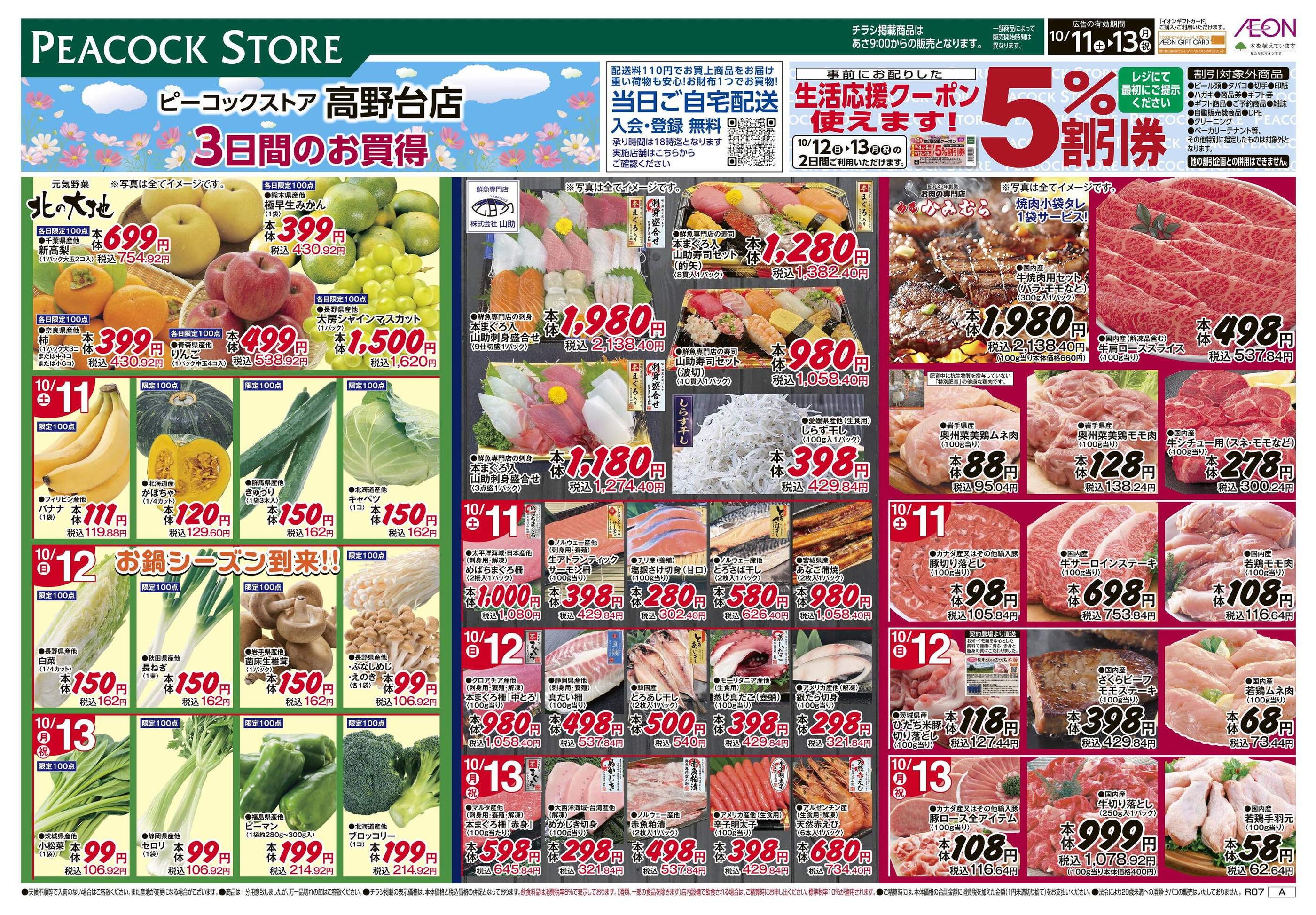 ピーコックストア高野台店今週のチラシ(2025年10月20日〜10月26日)