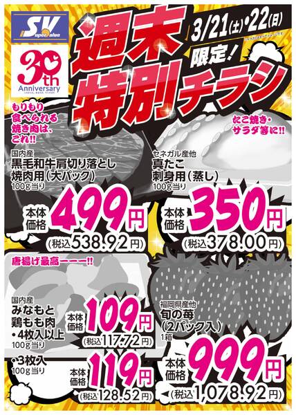 特売やセール情報など最新のチラシを掲載中。(2種類、3枚のチラシを掲載しています)