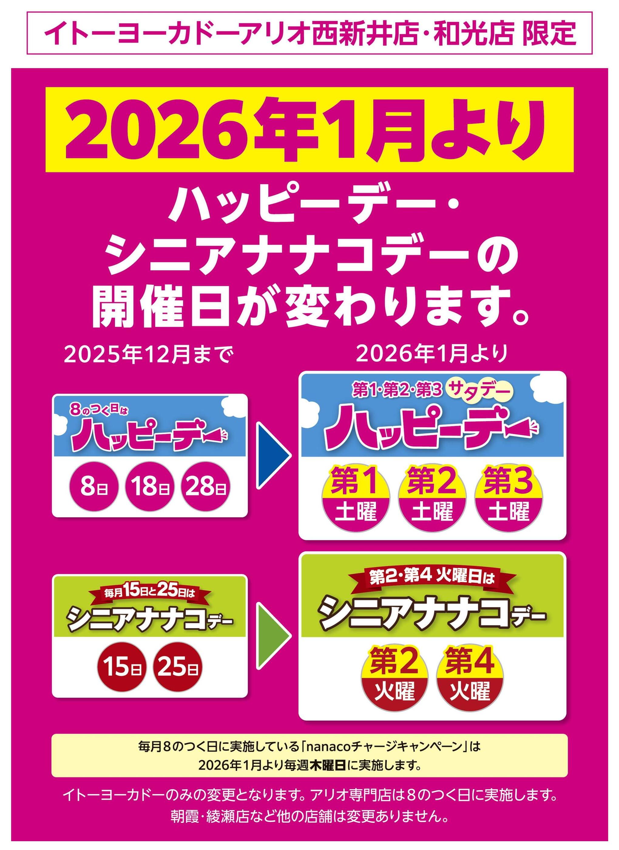 - 1/1(木)~1/31(土) 見逃し注意!!1月お買得Day/2026年1月よりハッピーデー・シニアナナコデーの開催日が変わります (2枚)