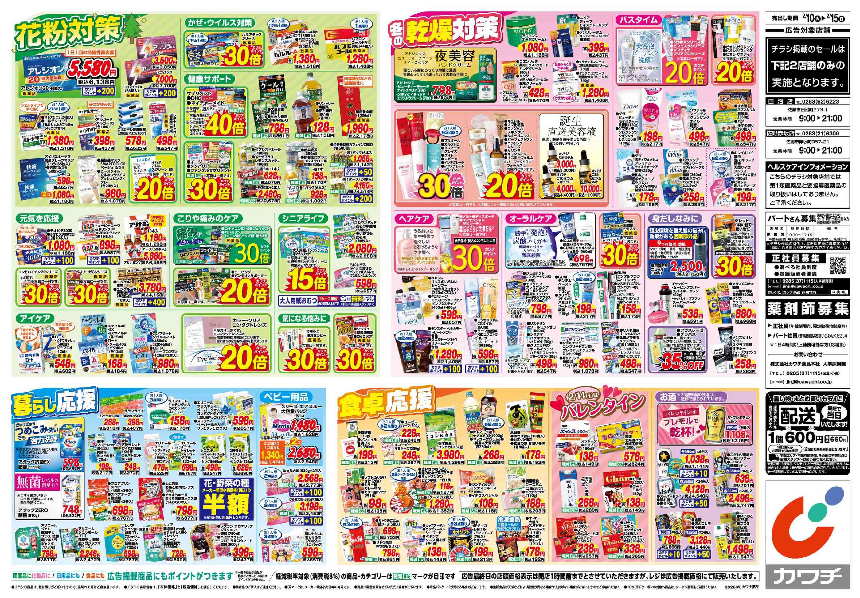 カワチ薬品田沼店今週のチラシ(2026年2月9日〜2月15日)