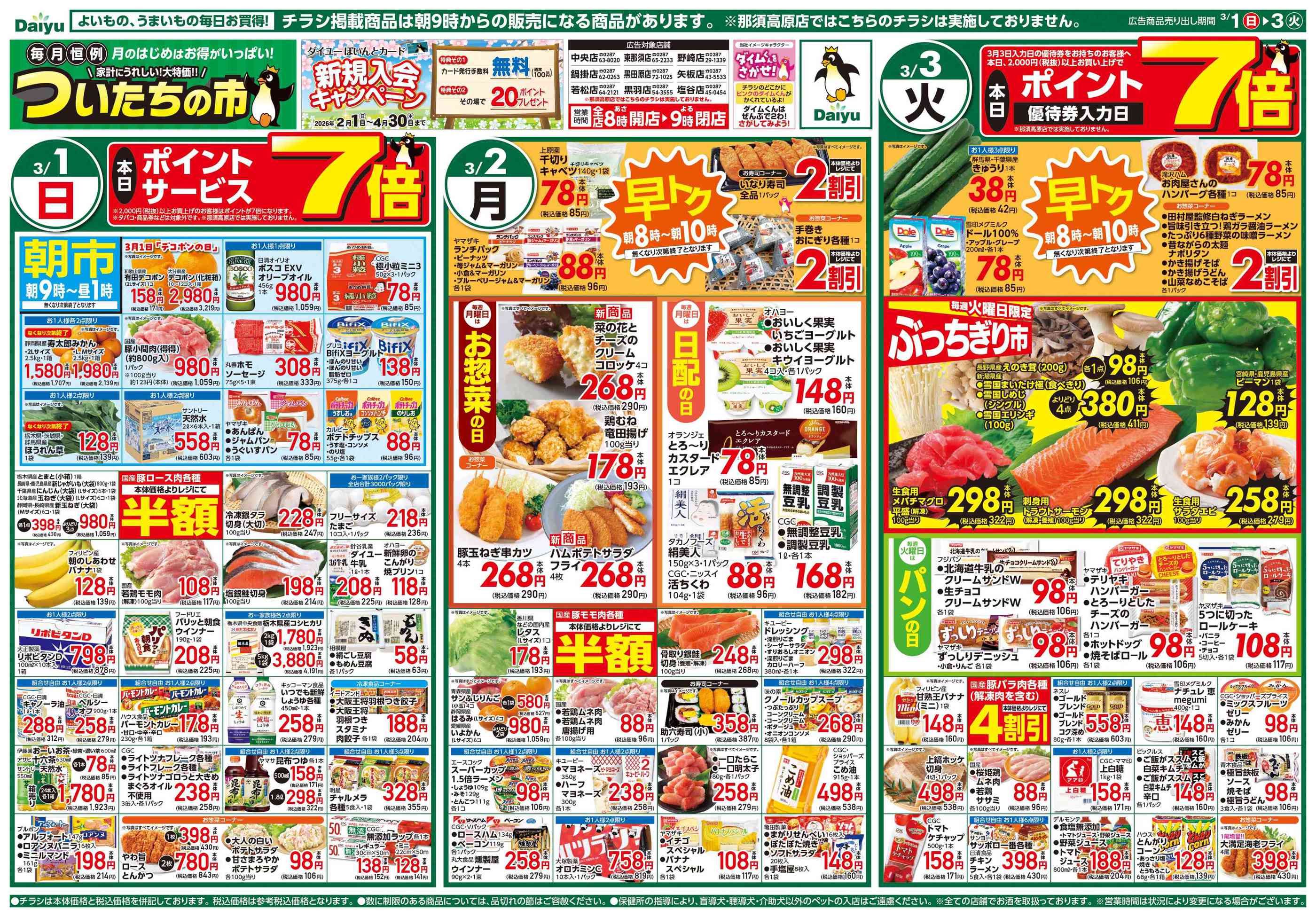 スーパーダイユー塩谷店今週のチラシ(2026年3月9日〜3月15日)