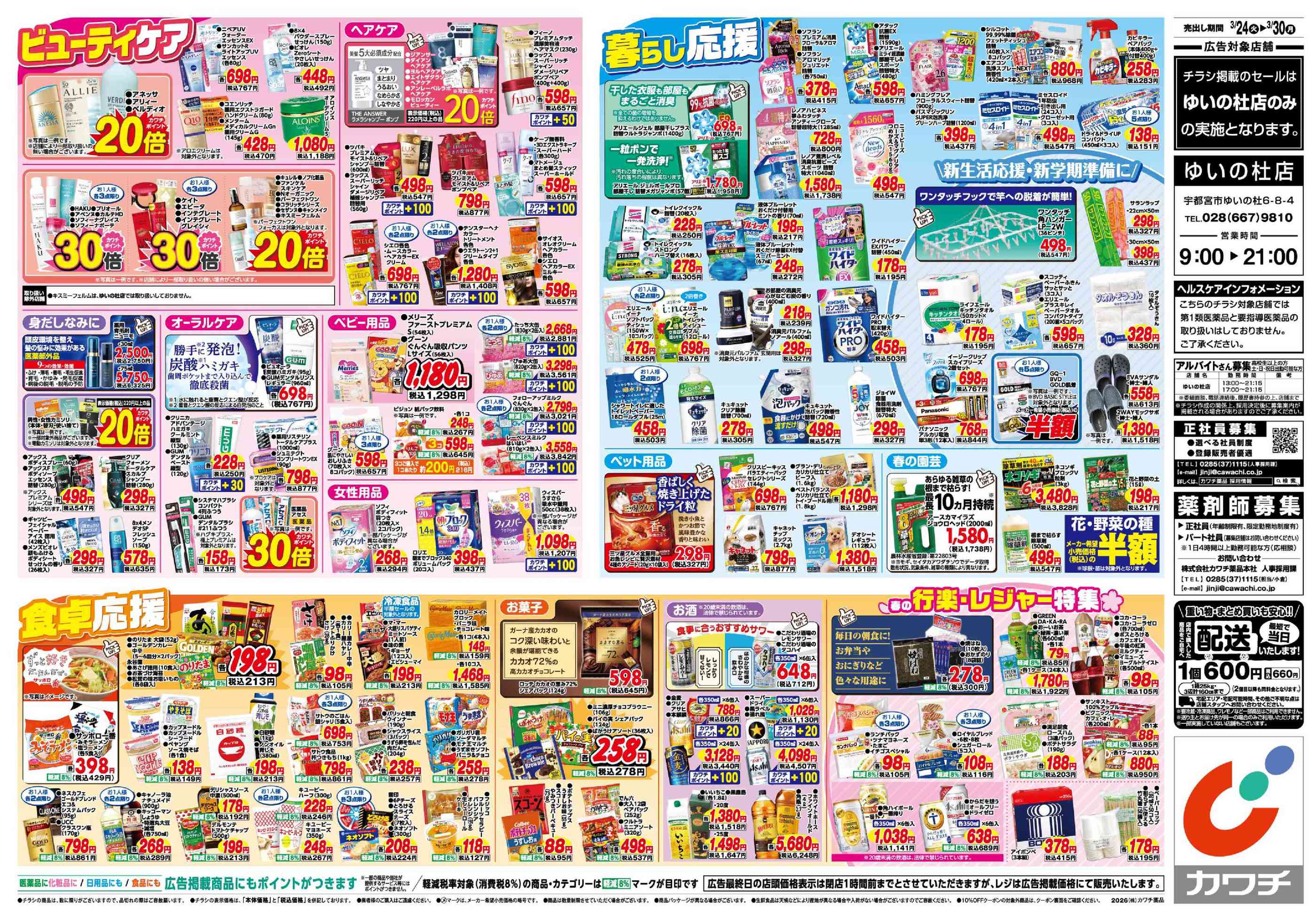 カワチ薬品ゆいの杜店今週のチラシ(2026年3月30日〜4月5日)