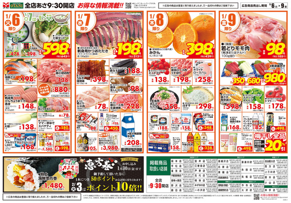 特売やセール情報など最新のチラシを掲載中。(1種類、2枚のチラシを掲載しています)